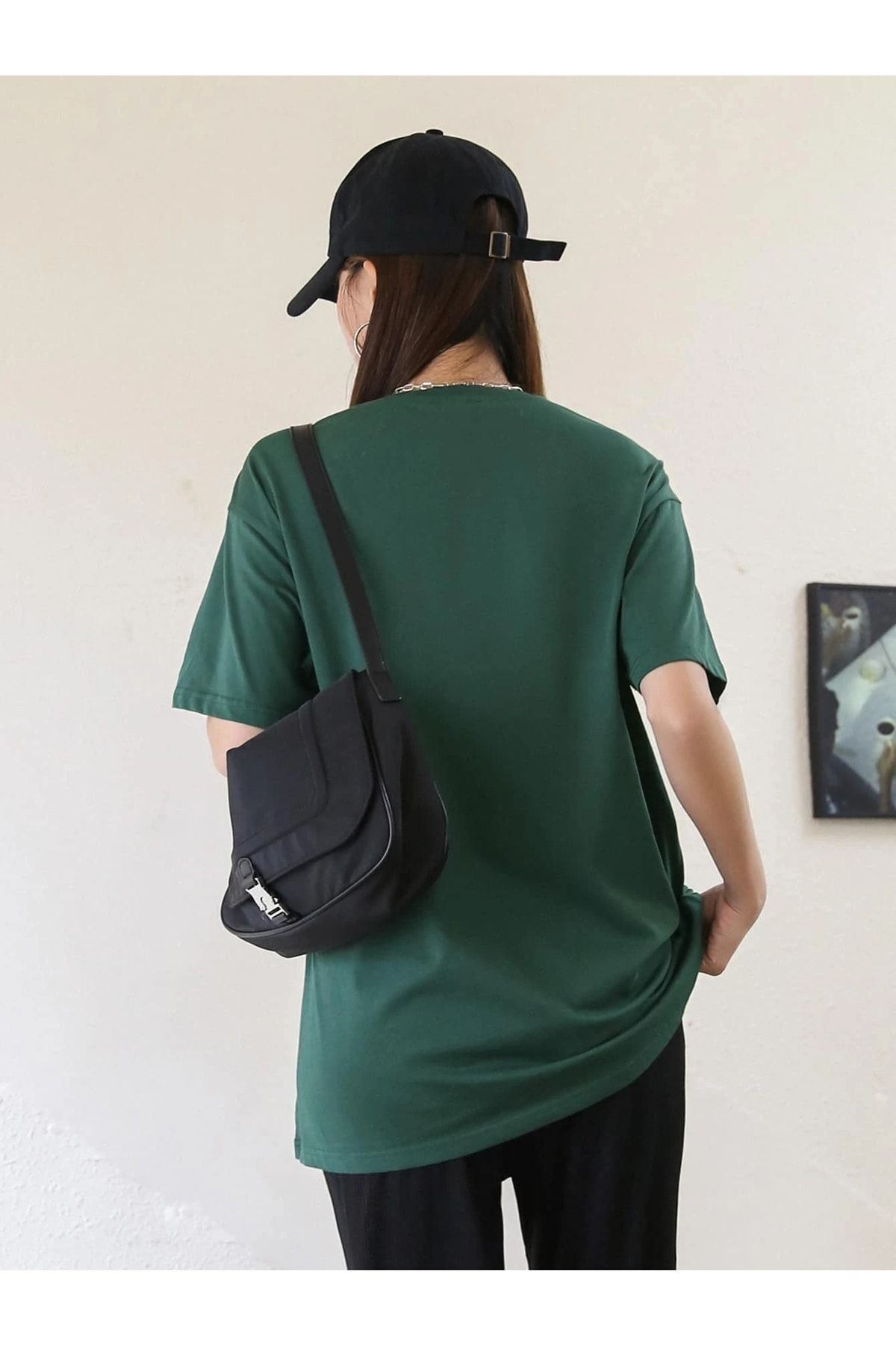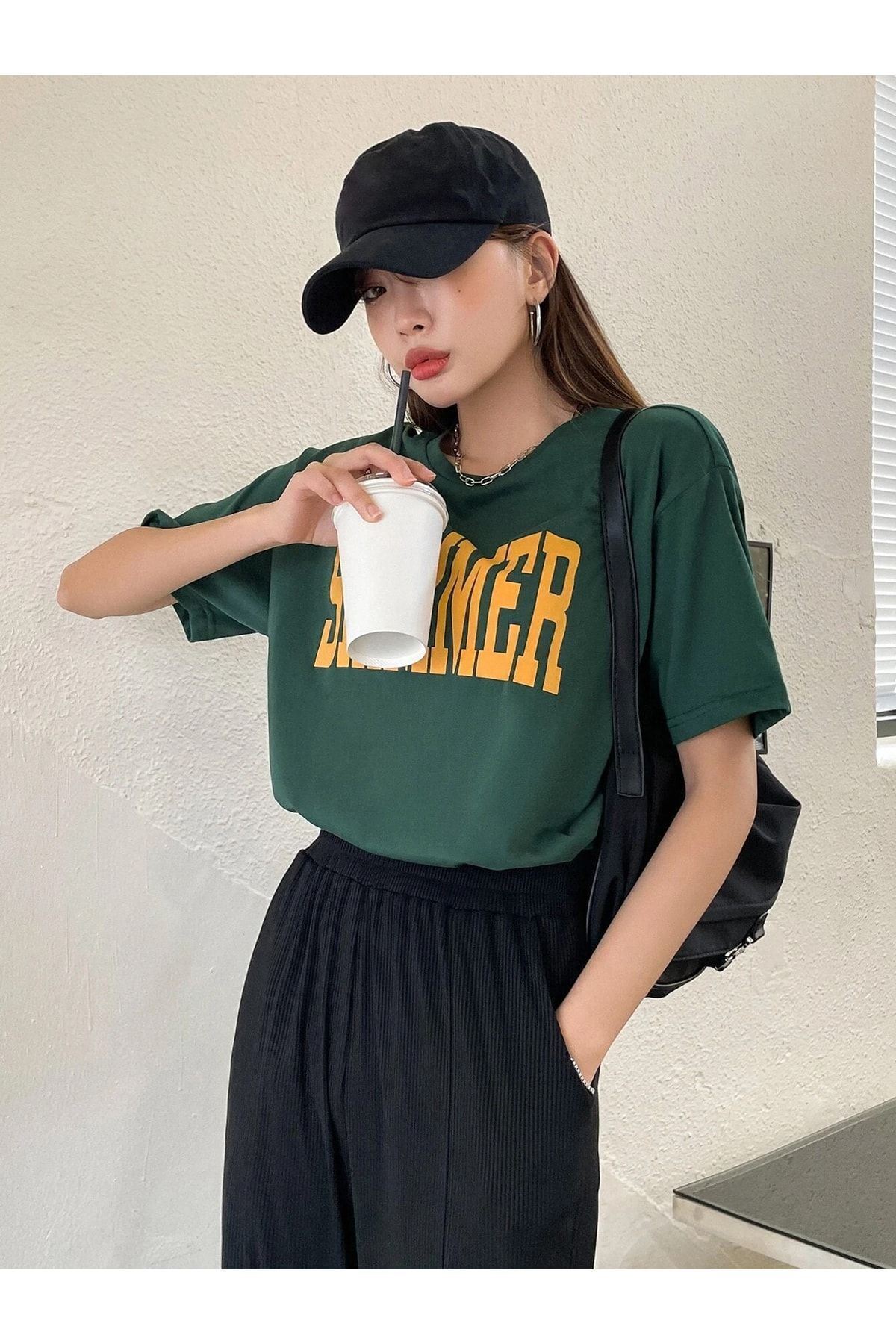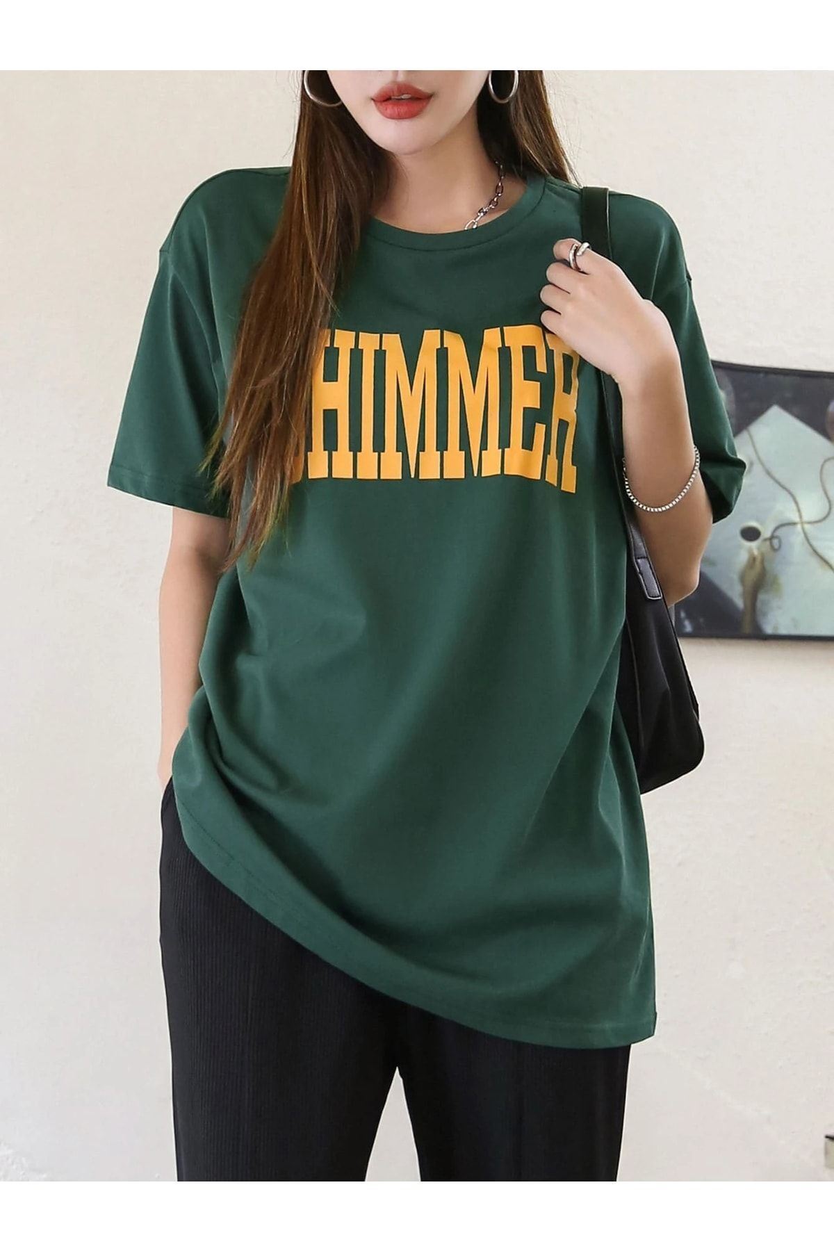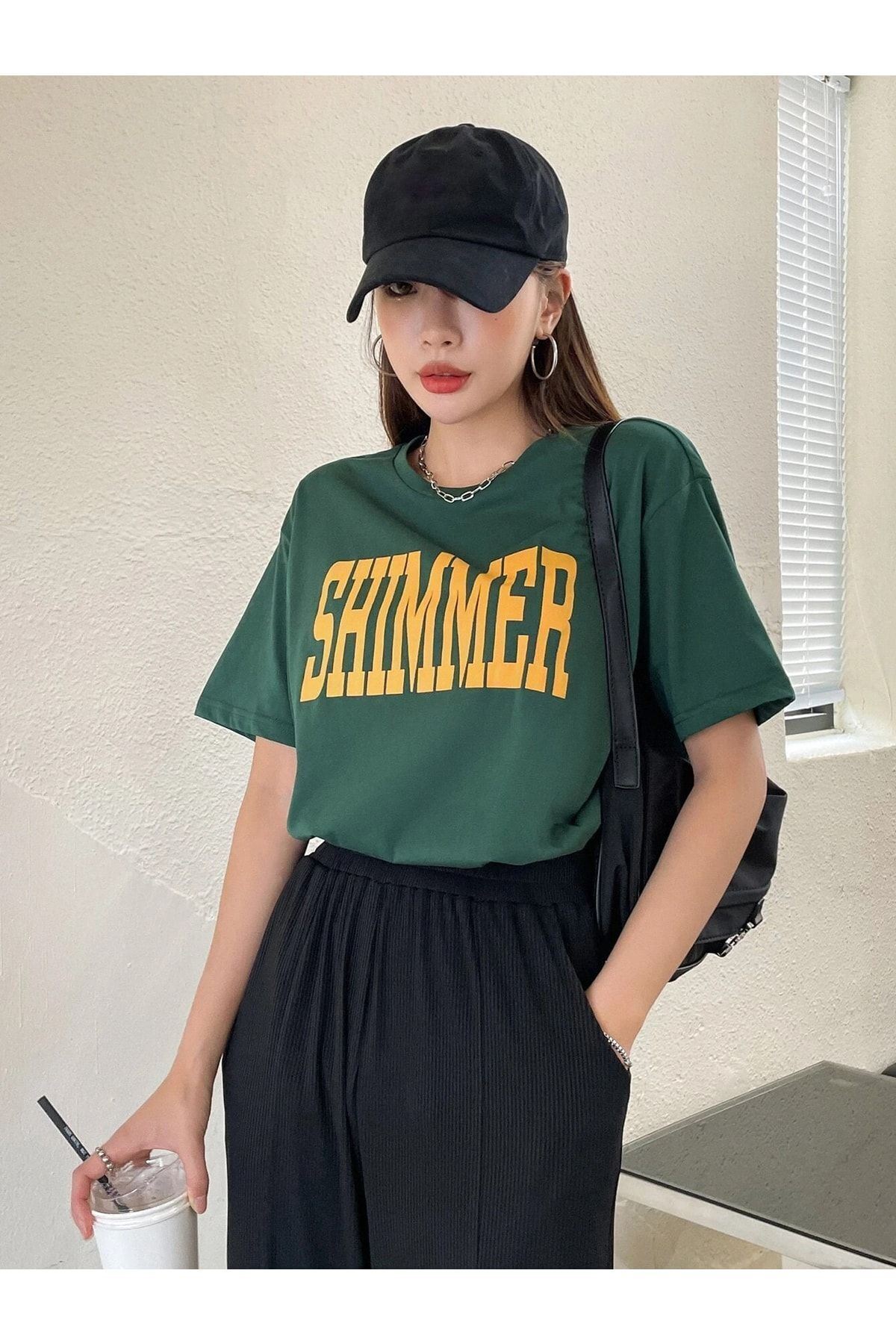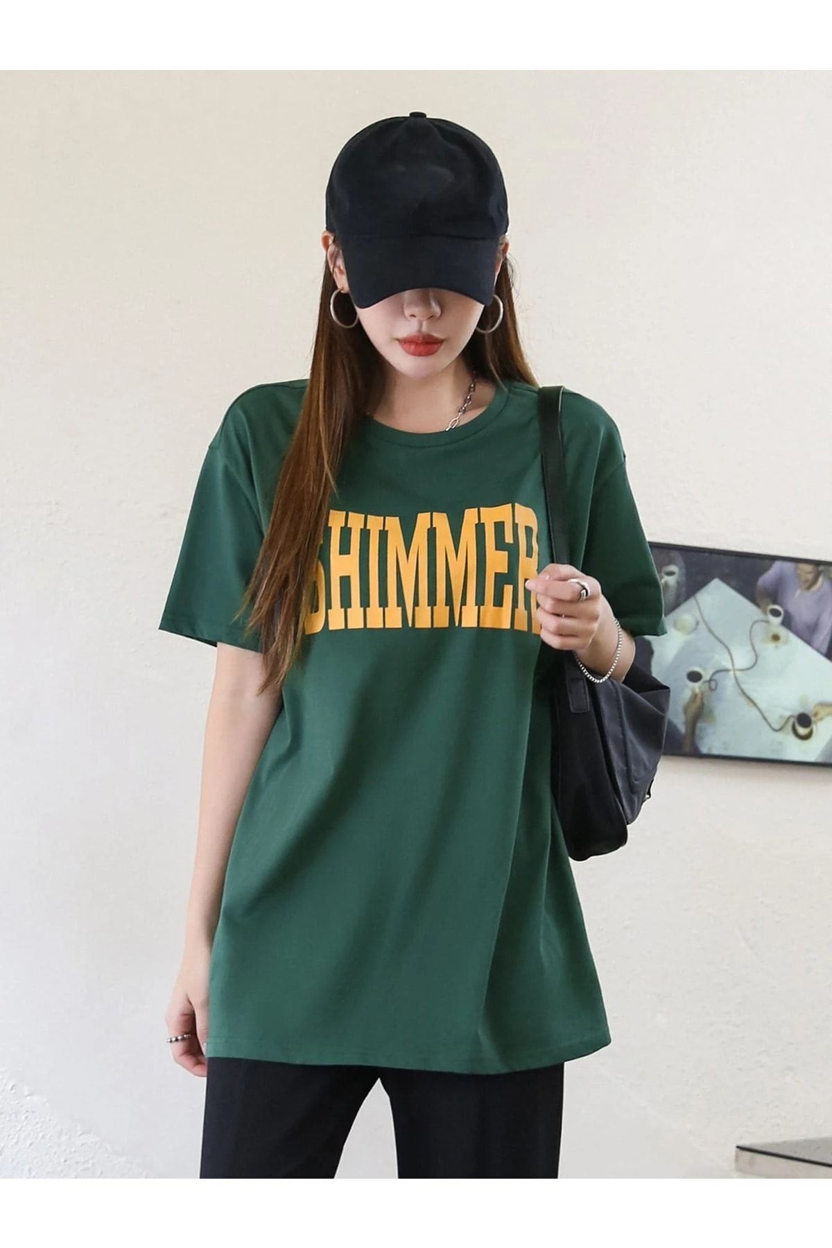 Kadın Yeşil Oversize Shimmer T-shirt - Oversize Baskılı