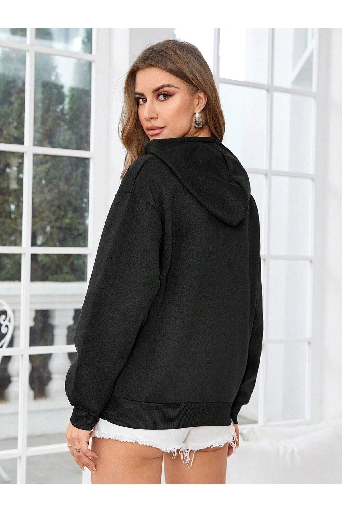 Kalp Logo Sweatshirt - Siyah Baskılı Oversize Kapüşonlu
