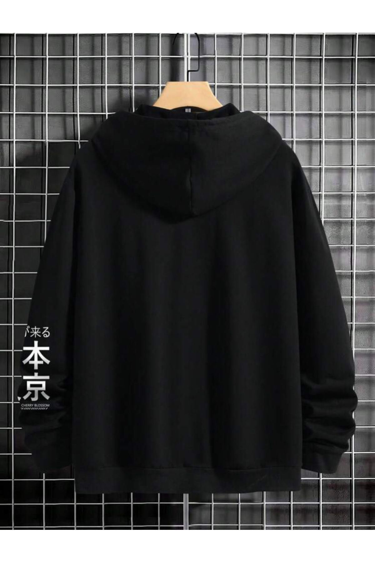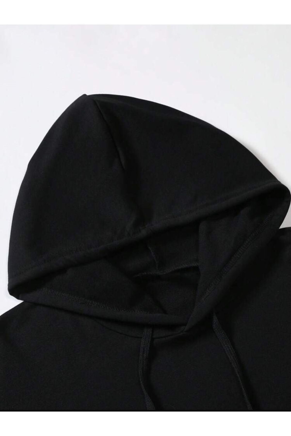Trend oversize kesimiyle modern ve rahat bir tarz sunan siyah kapüşonlu sweatshirt, günlük kullanım için idealdir.; 2 iplik rejenere şardonlu dokuma tipiyle dayanıklılığı artırılmış olup, uzun süreli kullanıma uygundur.; Dijital baskı tekniğiyle uygulanan yazı karakterli/motto deseni, tarzınıza özgün bir dokunuş katar.; Kanguru cebi sayesinde küçük eşyalarınızı yanınızda taşımanız kolaylaşır.; Uzun kollu tasarımı ile mevsim geçişlerinde ideal koruma sunarken sportif bir görünüm kazandırır.; Regular silueti sayesinde tüm vücut tiplerine uyum sağlayarak rahatlık hissi verir.;