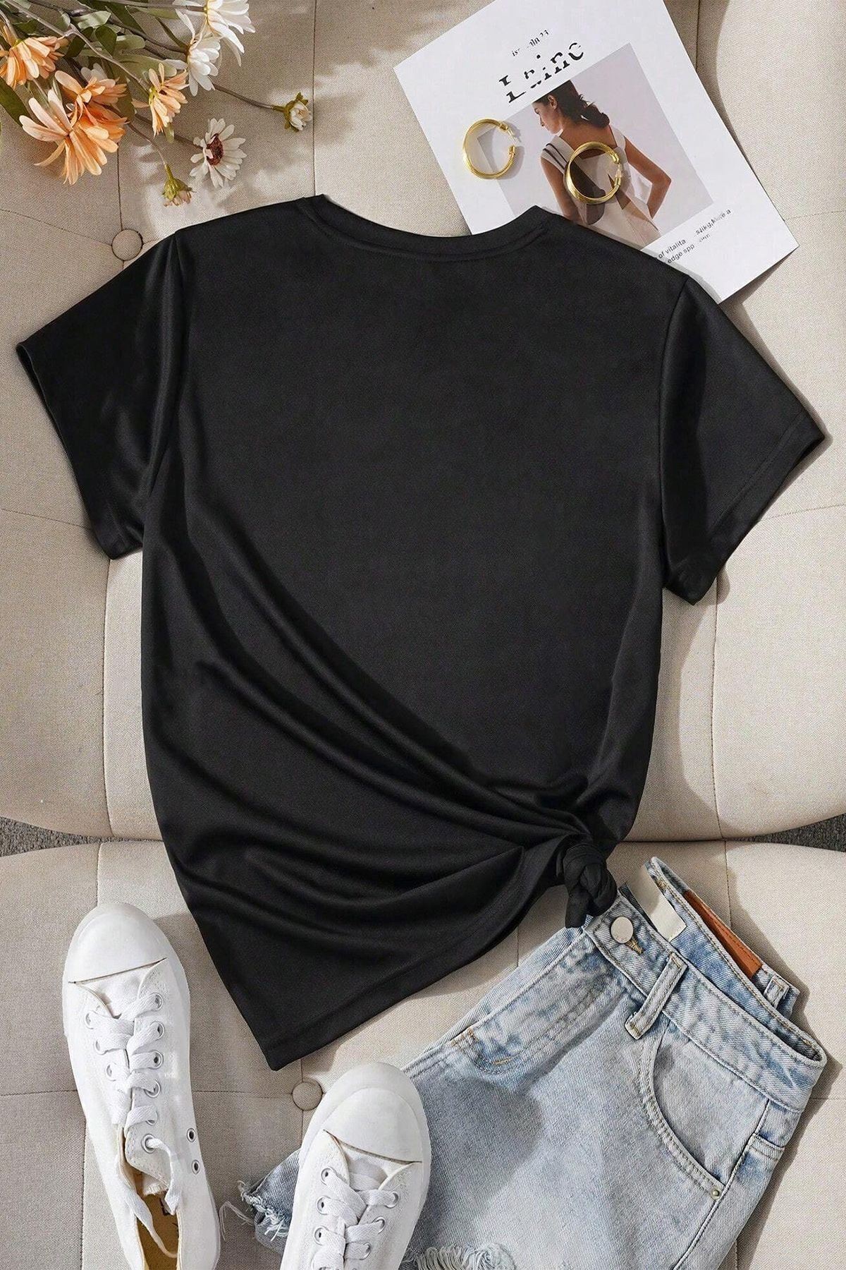 Kelebek Papatya Baskılı Süprem Siyah T-Shirt - Oversize Bisiklet Yaka Tişört