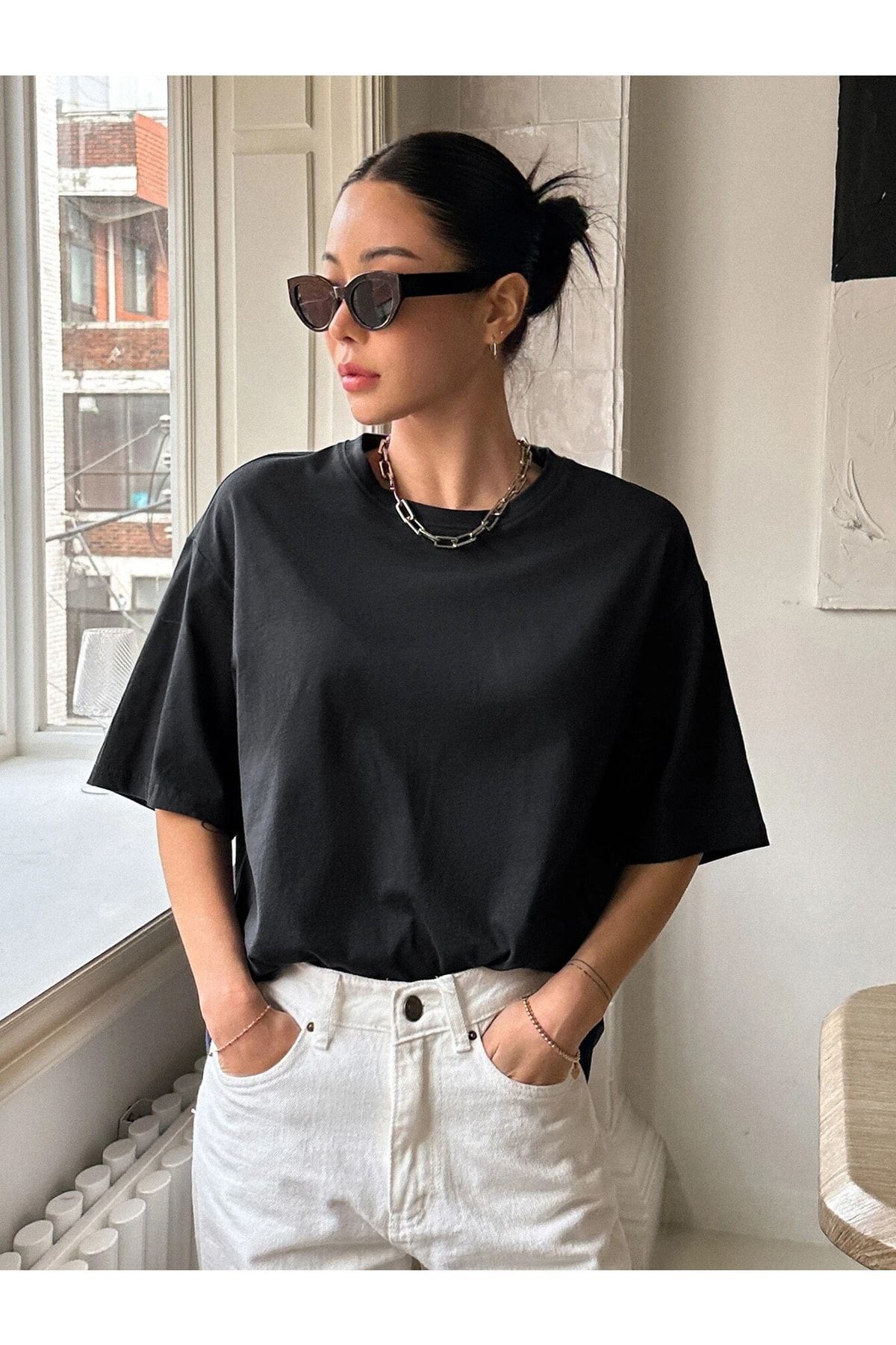 Kind Hearted - Siyah Baskılı Oversize Bisiklet Yaka Kısa Kol Tişört