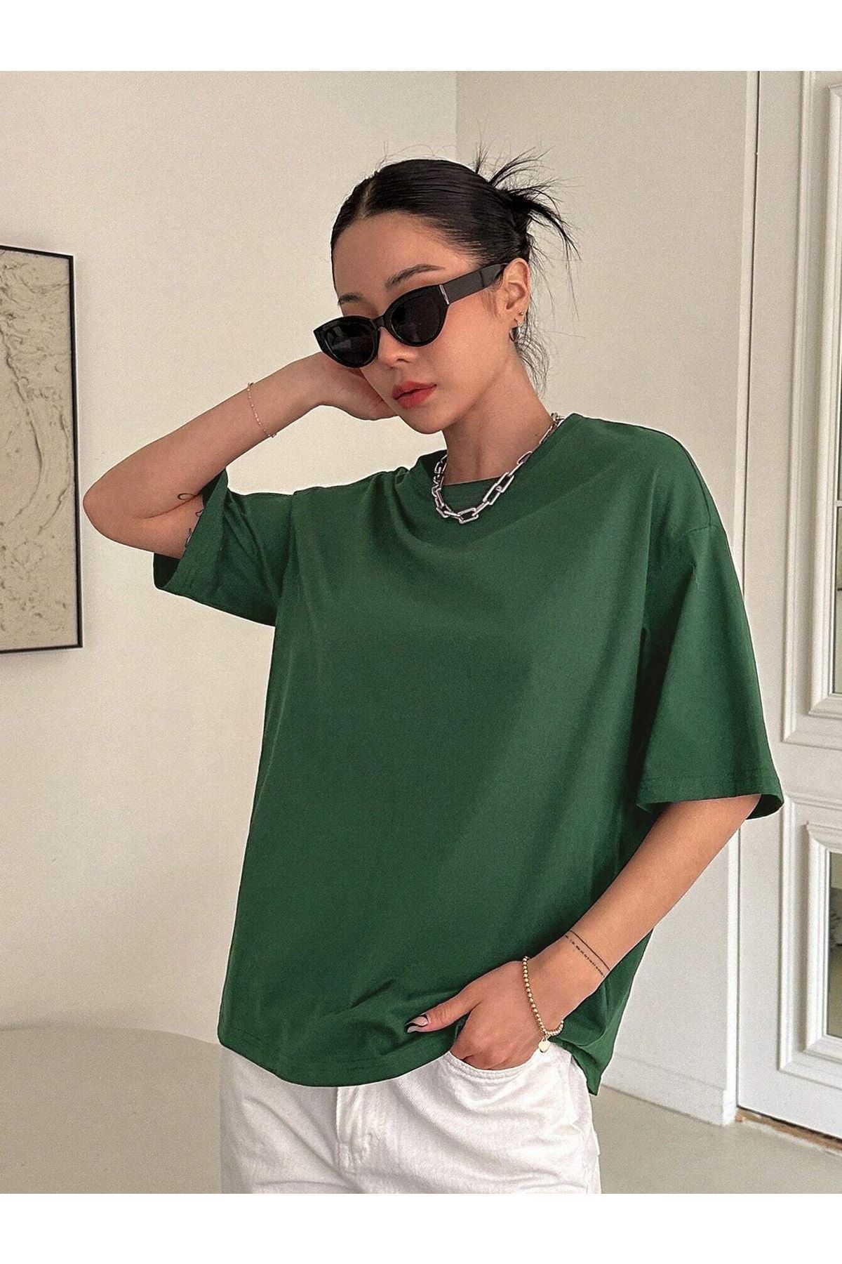 Kind Hearted T-shirt - Yeşil Baskılı Oversize Bisiklet Yaka Kısa Kol Tişört