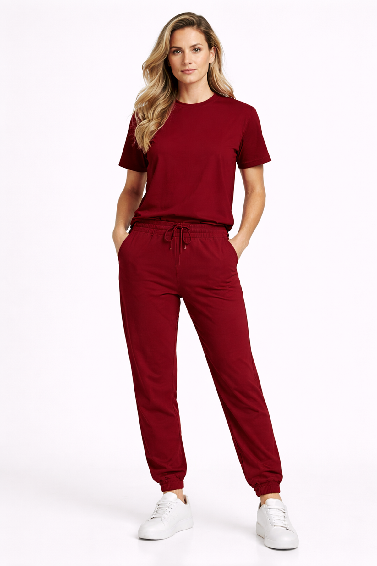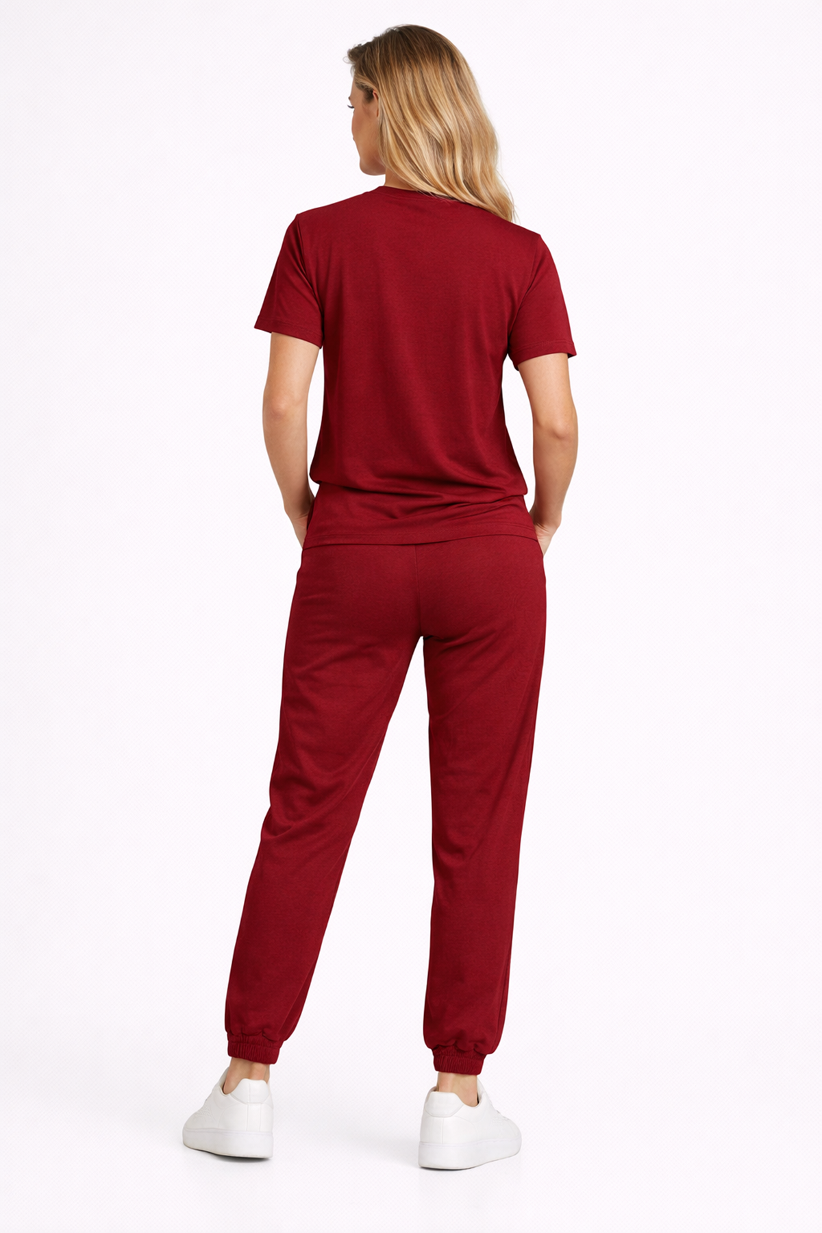 Kırmızı basic kadın eşofman tişört takımı, günlük stilinde rahatlığı ön planda tutan kadınlar için tasarlanmıştır. Bisiklet yaka kısa kollu tişört ve beli lastikli jogger eşofman altından oluşan bu ikili takım, hem evde hem dışarıda konforlu kullanım sunar. Yumuşak dokusu, modern görünümü ve sade tasarımı sayesinde spor şıklık arayanlar için ideal bir seçimdir. Günlük kombinlerde tek parça kolaylık sağlayan bu takım, sneaker ile tamamlandığında zahmetsiz ve şık bir görünüm oluşturur.