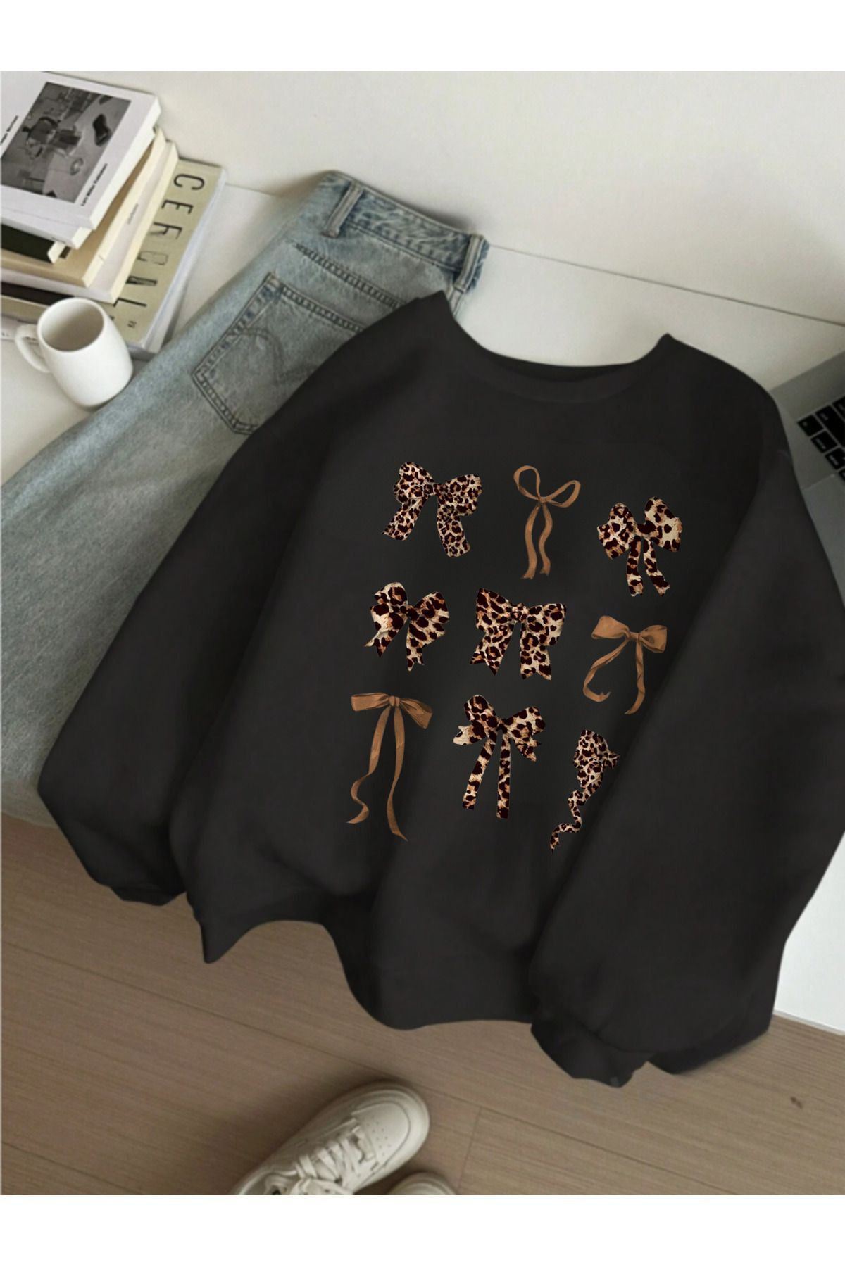 - Leopar baskısı ile dikkat çeken bu sweatshirt, sportif şıklığı günlük kullanıma taşır.; - Kapamasız tasarımı sayesinde rahat bir kullanım sunarken, oversize kesimiyle konforlu bir deneyim sağlar.; - Eskitme/soluk efektli dokusuyla vintage tarzını modern çizgilere taşıyan bu parça, her yaş grubuna hitap eder.; - 30 derecede tersten yıkama talimatına uygun şekilde kolayca temizlenebilir; böylece uzun süre ilk günkü gibi kalır.; - Her ortamda rahatlıkla tercih edebileceğiniz bu spor giysi, hem yetişkinler hem de gençler için idealdir.; - Pamuk polyester karışımından üretilmiş kumaşı dayanıklılığı artırırken yumuşak dokunuşuyla teninizi okşar.; - Bisiklet yakası ve askılı kol tipi ile yaz ayları da dahil olmak üzere yıl boyunca kullanılabilirliği arttırır.