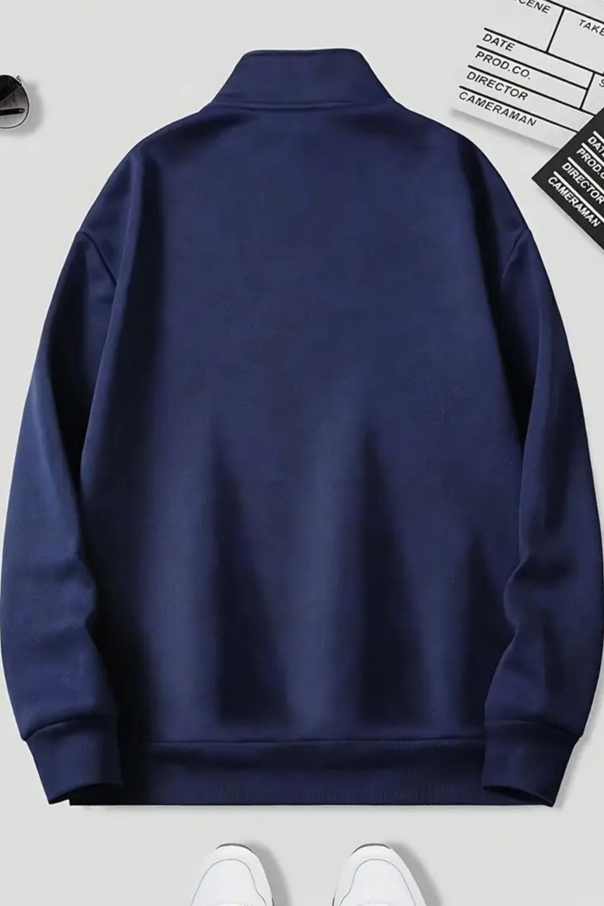 Lacivert Fermuarlı Dikyaka Sweatshirt- THİNK Baskılı- Kışık Şardonlu Kumaş
