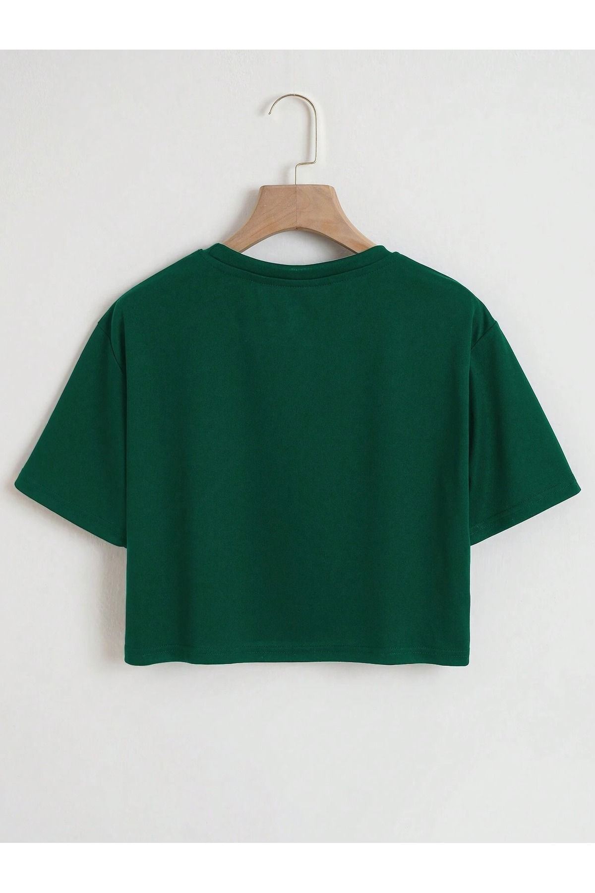 Los Angeles 23 Crop - Nefti Yeşil Baskılı Oversize Bisiklet Yaka