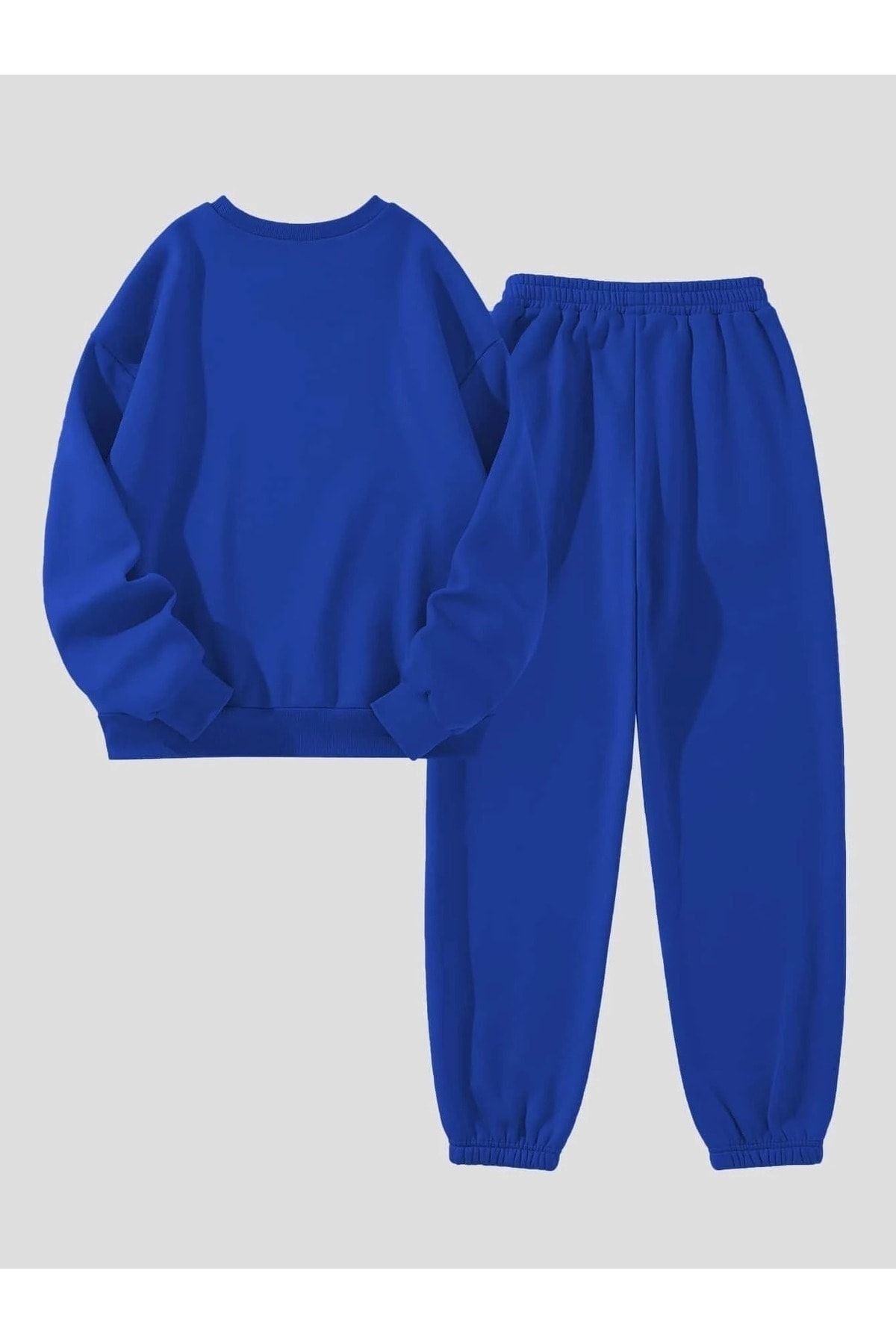 Los Angeles Minimal Eşofman Takımı - Sax Mavi Baskılı Oversize Şardonlu Bisiklet Yaka