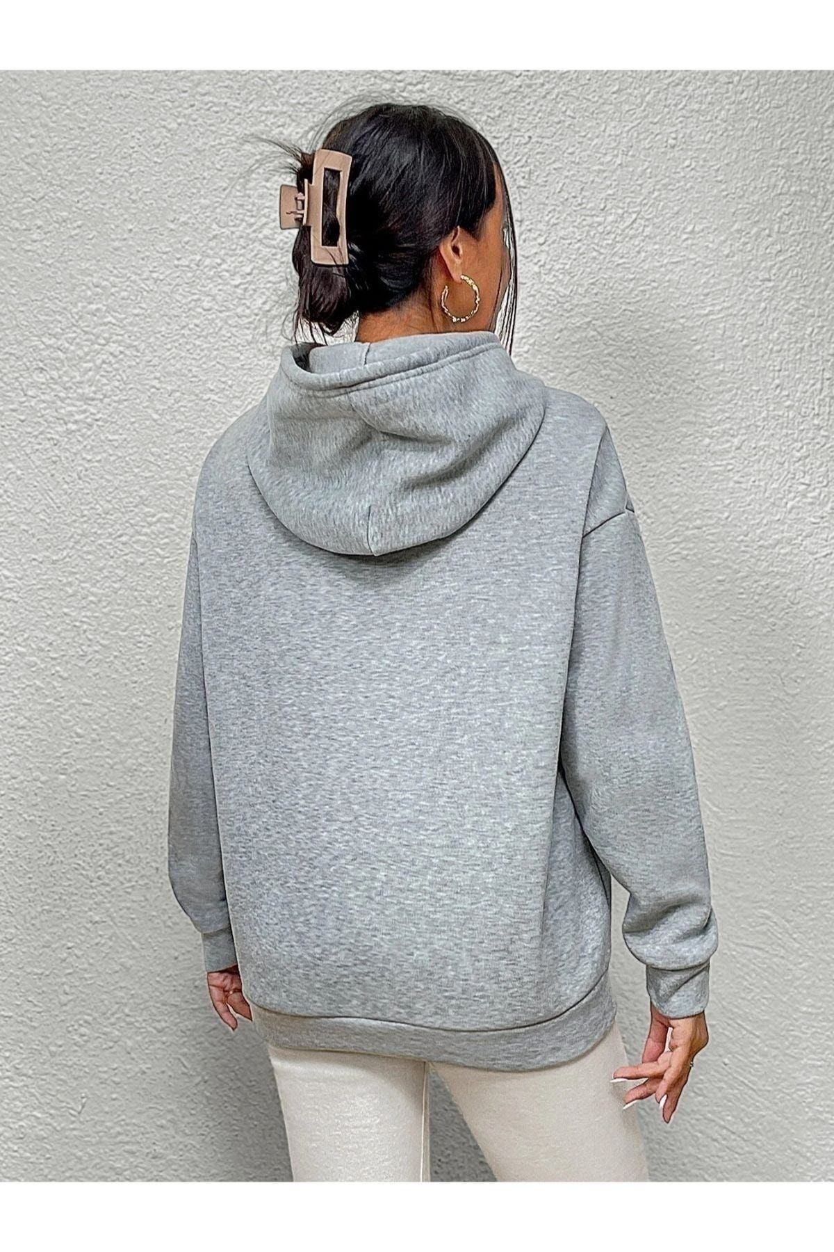 Los Angeles Minimal Sweatshirt - Gri Baskılı Oversize Kapüşonlu