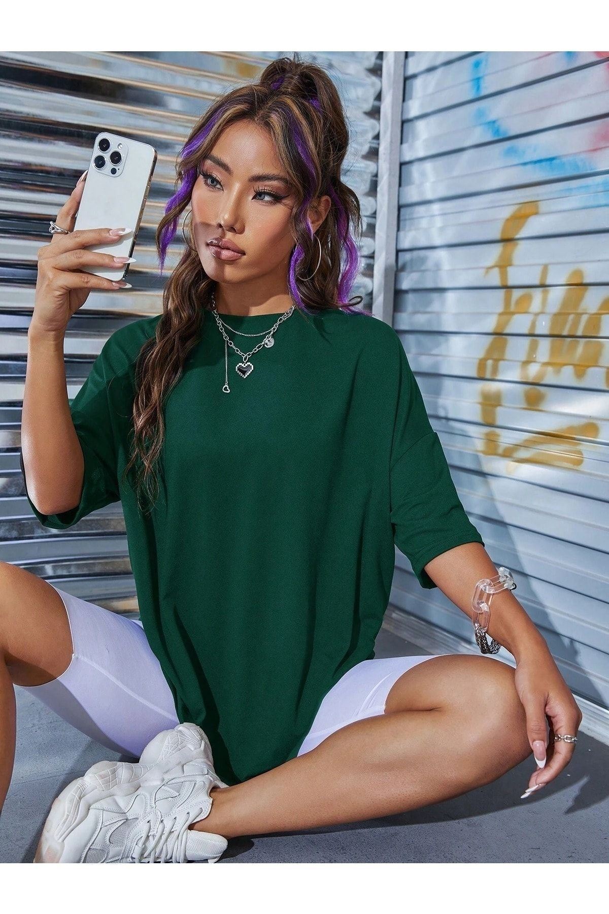 Los Angeles Sırt T-shirt - Yeşil Oversize Baskılı Bisiklet Yaka