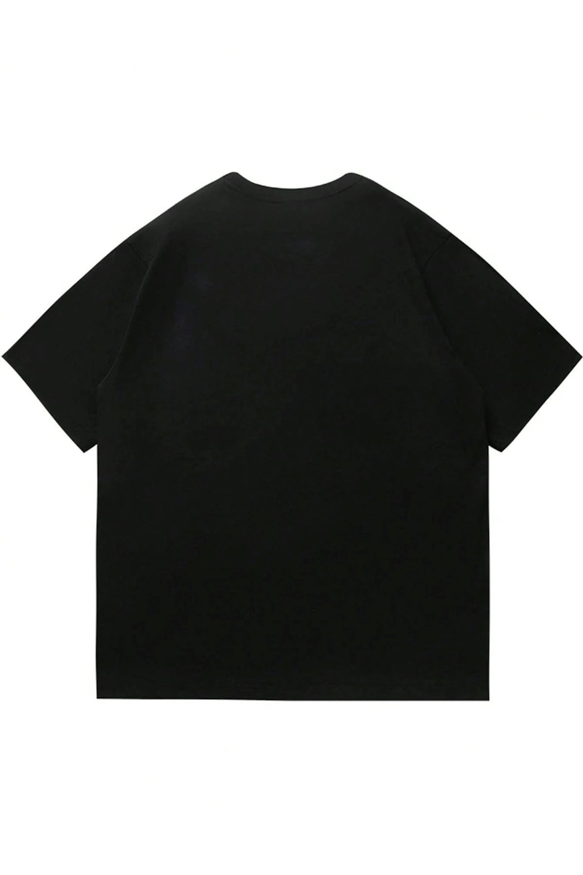 MILANO ITALIA Baskılı Süprem Siyah T-Shirt - Oversize Bisiklet Yaka Tişört