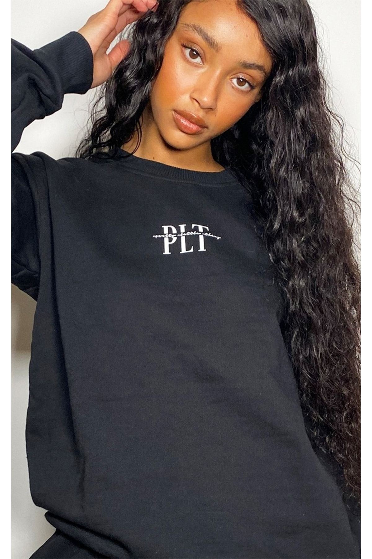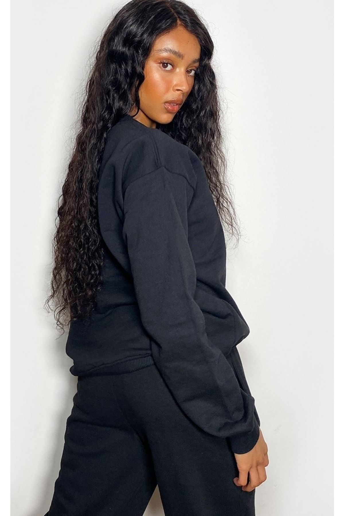 Minimal Eşofman Takımı Sweatshirt Jogger - Baskılı Oversize Bisiklet Yaka Şardonlu Lastik Paça