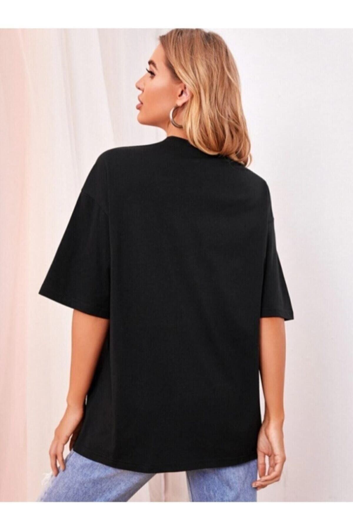 Minimal Kalp T-shirt - Siyah Baskılı Oversize Bisiklet Yaka Kısa Kol Tişört