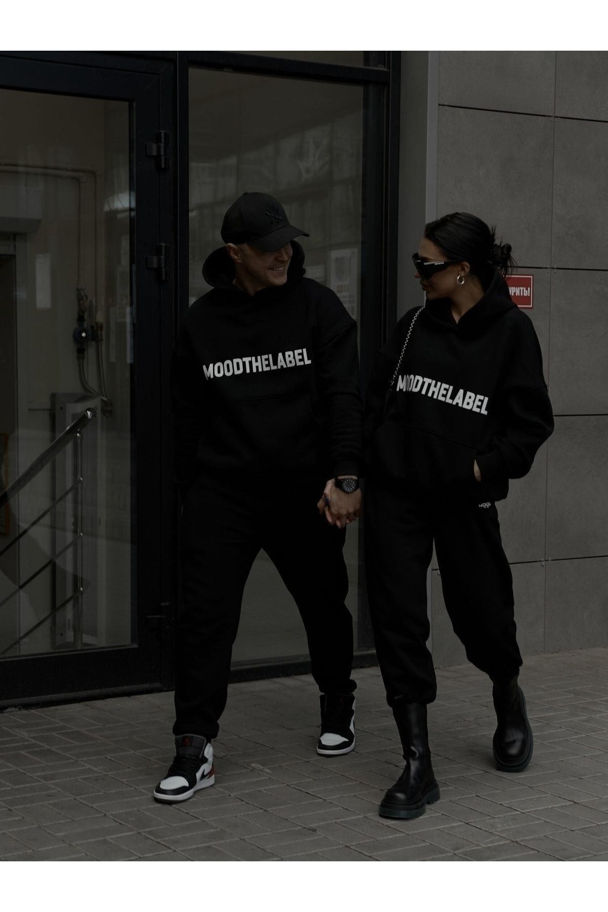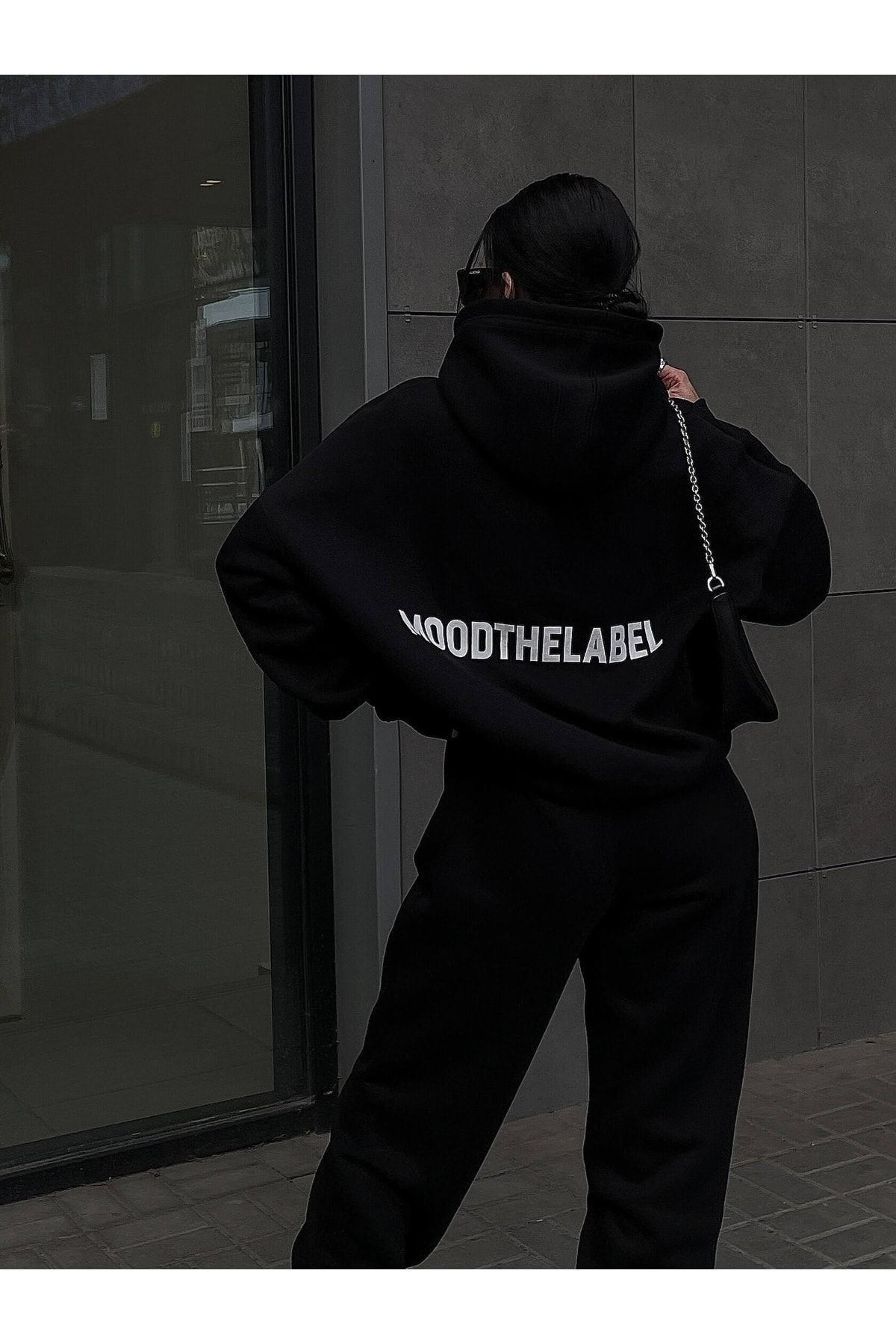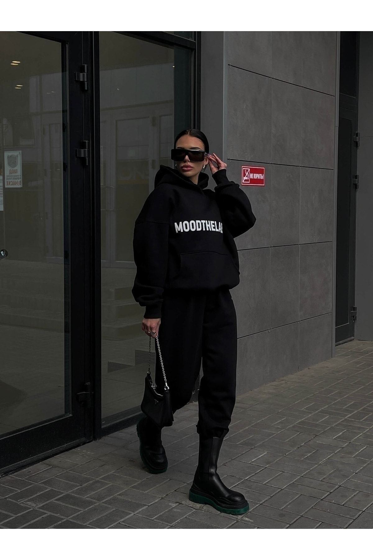 Mood The Label Kışlık Eşofman Takımı - Siyah Baskılı Kapüşonlu Oversize Şardonlu