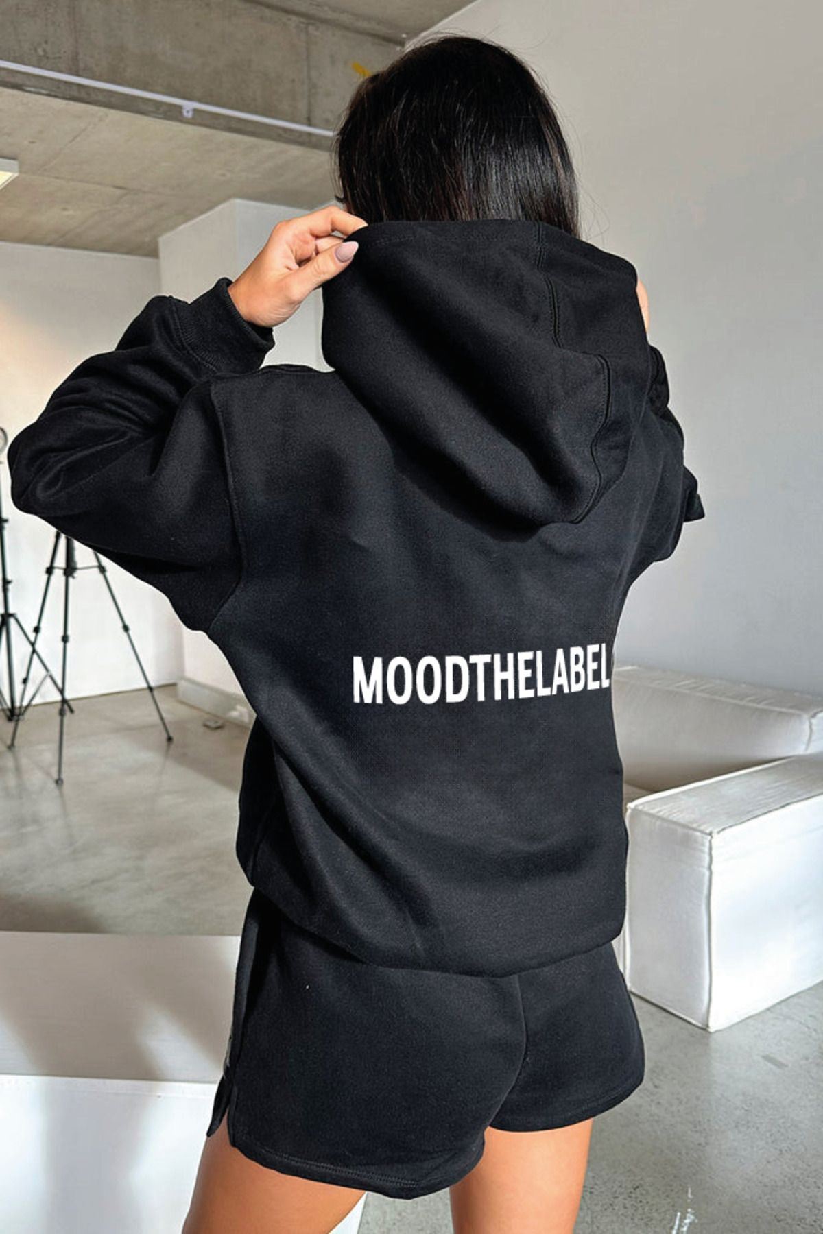 Mood The Label Sweatshirt - Siyah Baskılı Oversize Kalın Kışlık Kapüşonlu