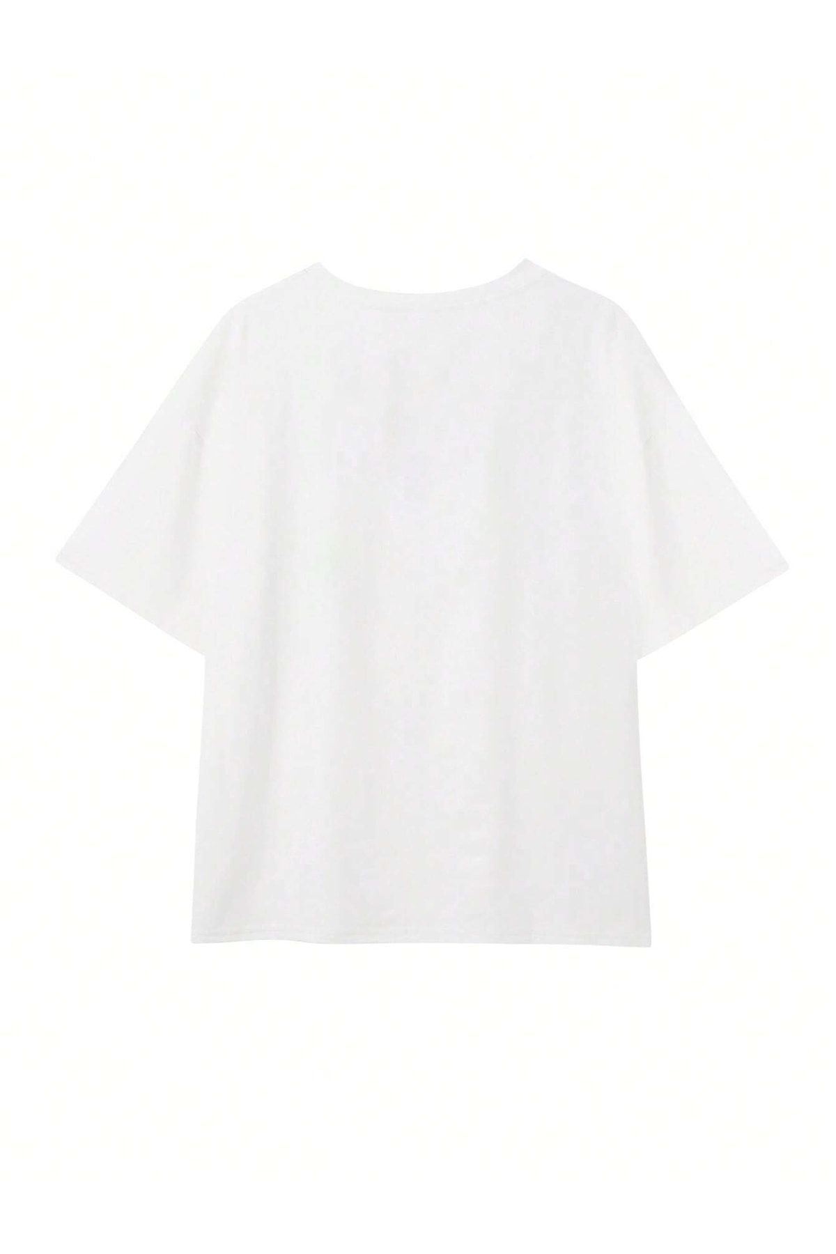 Nevep Logo T-Shirt - Beyaz Oversize Baskılı Bisiklet Yaka Kısa Kol