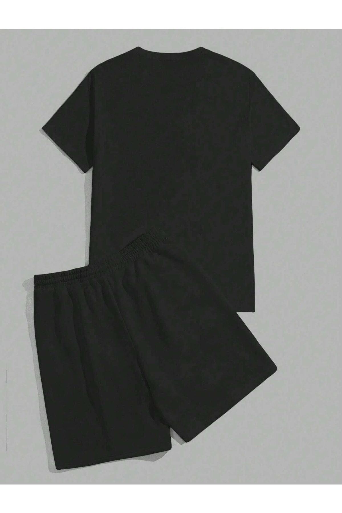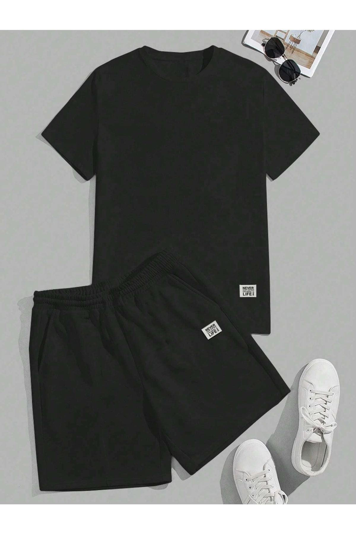 Never Life T-Shirt Şort - Siyah Alt Üst Kombin Şort Tişört Takım Baskılı Oversize Bisiklet Yaka