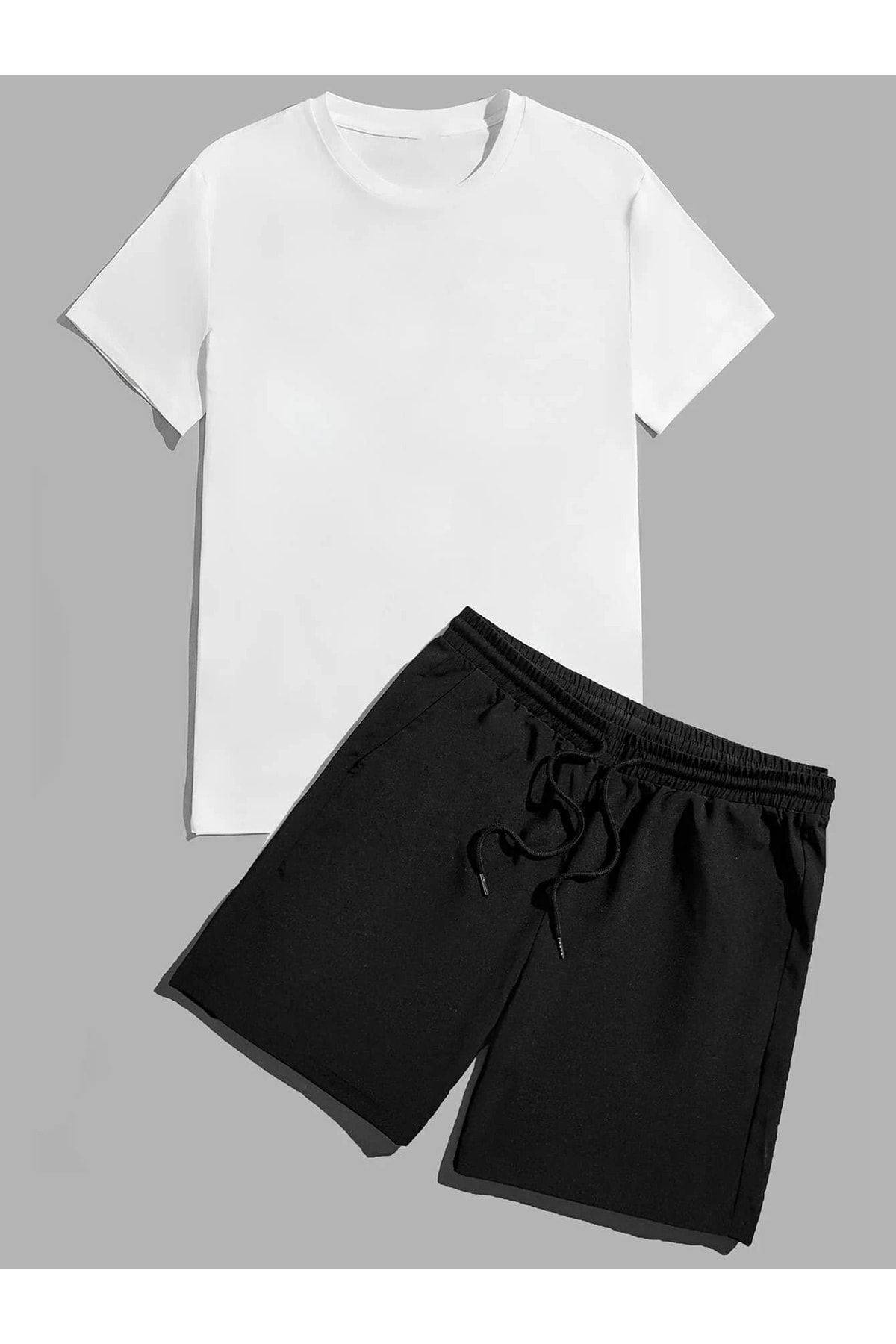 Never Look Back T-shirt Şort - Beyaz Siyah Alt Üst Takım Şort Tişört Kombin Baskılı Bisiklet Yaka