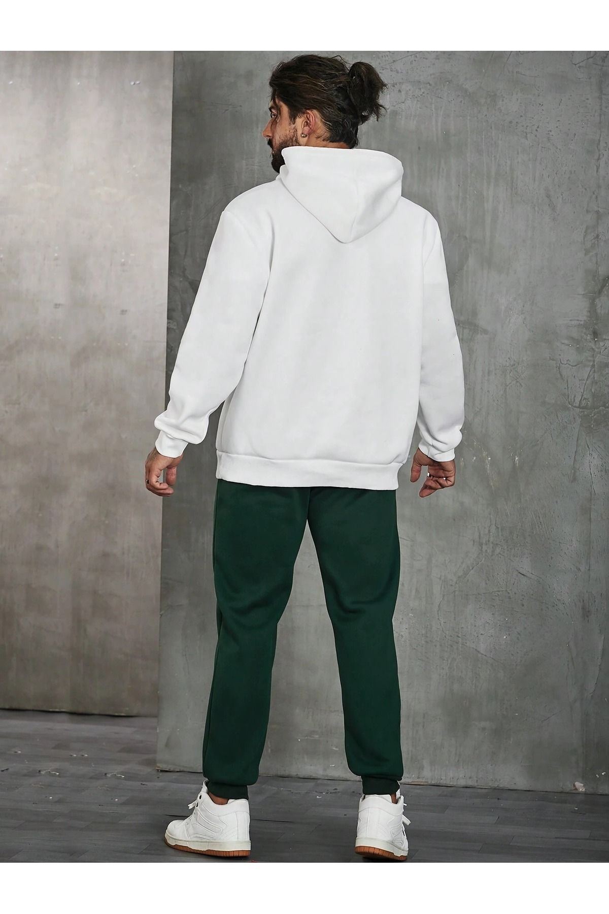 New York Eşofman Takımı Sweatshirt Jogger - Beyaz Nefti Yeşil Baskılı Oversize Şardonlu Kapüşonlu