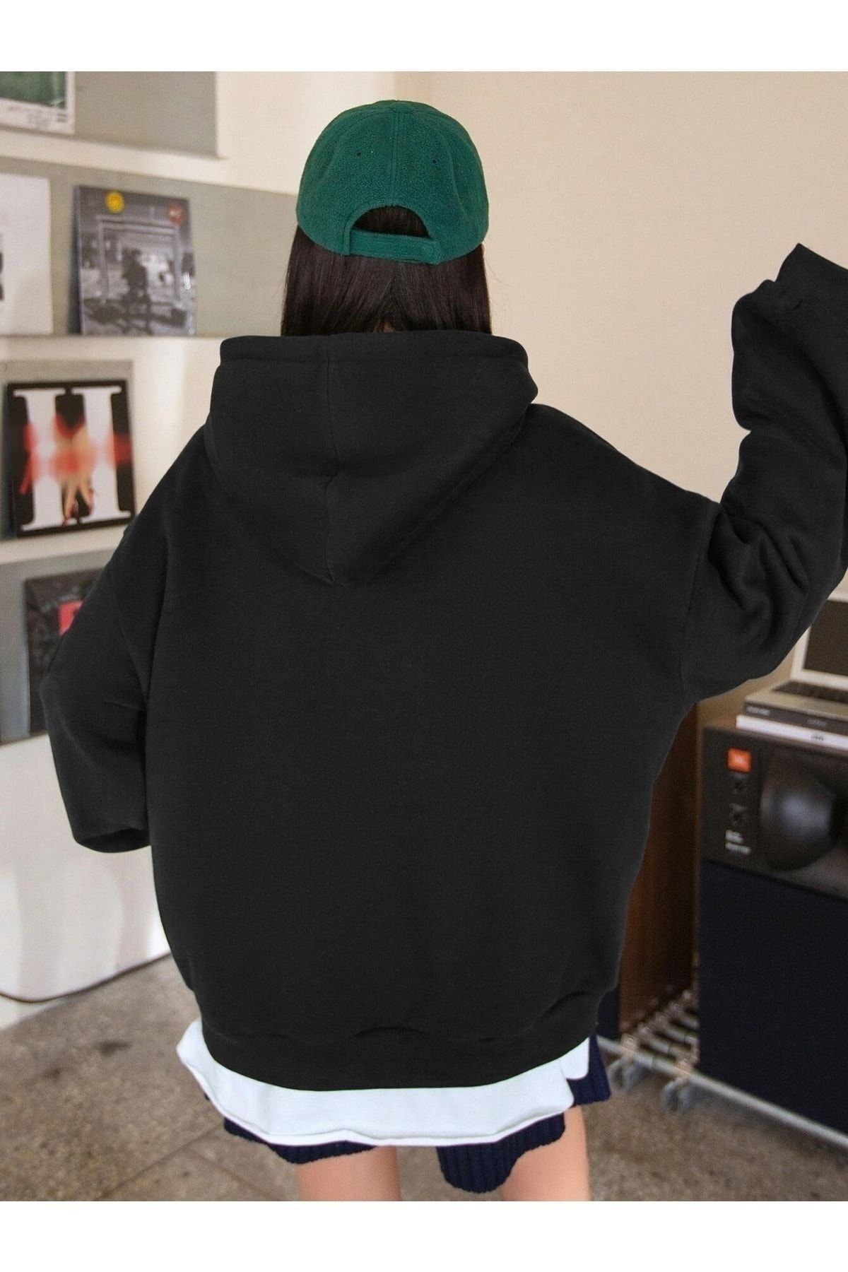 Nice Sweatshirt - Siyah Baskılı Oversize Kapüşonlu