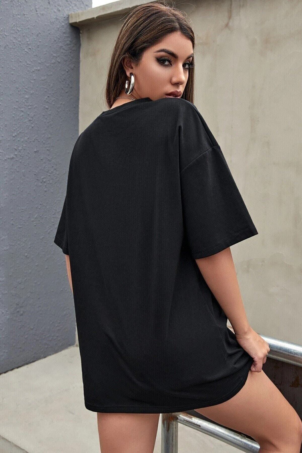 No Thanks T-shirt - Siyah Baskılı Oversize Bisiklet Yaka Kısa Kol Tişört
