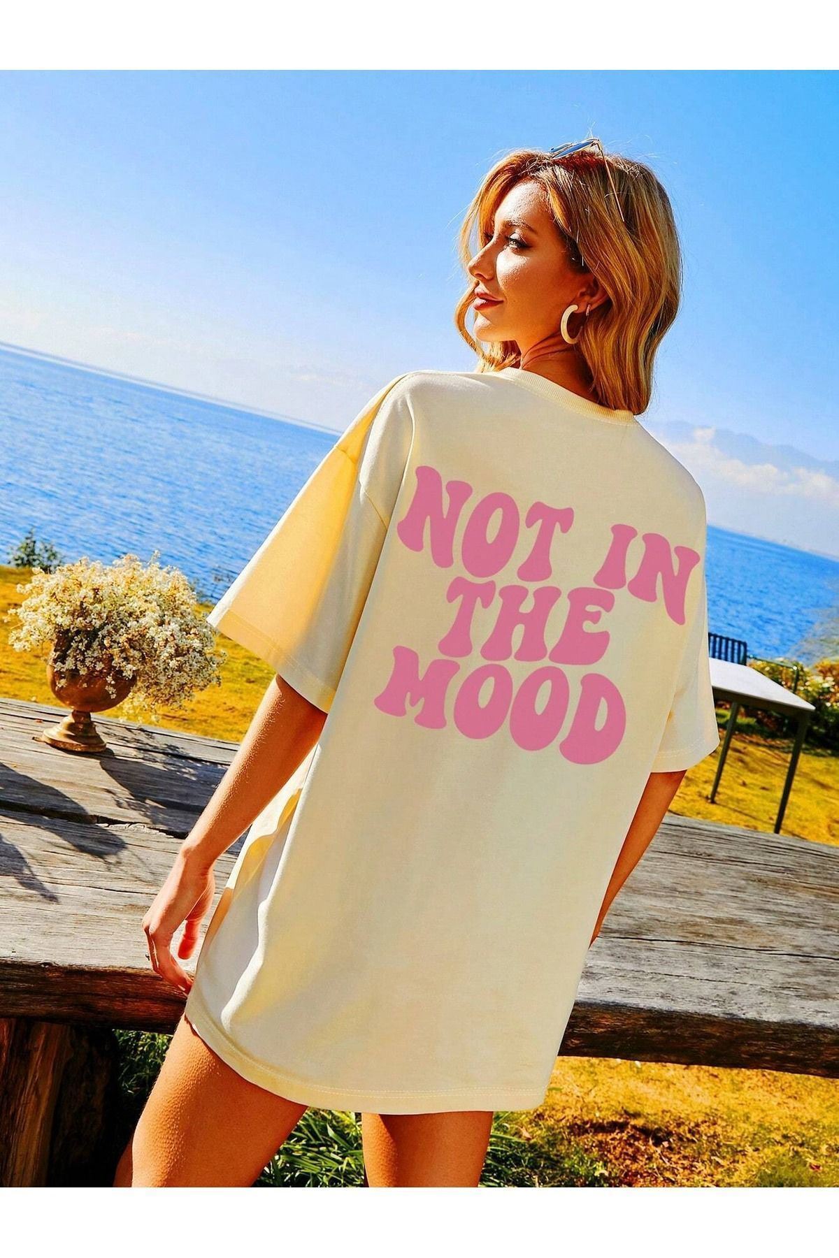 Not Mood Süprem T-Shirt - Bej Baskılı Oversize Bisiklet Yaka Kısa Kol Tişört