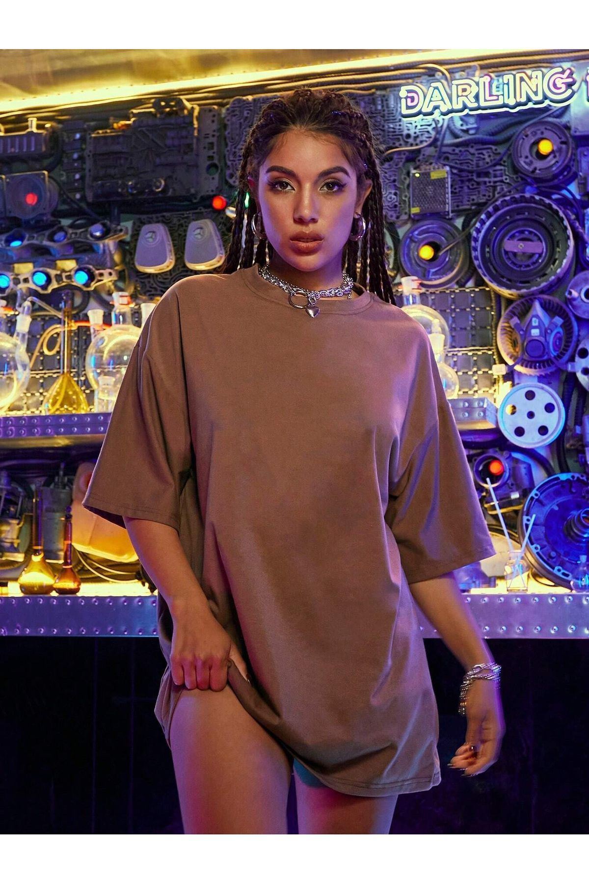 Not Mood Süprem T-Shirt - Kahverengi Baskılı Oversize Bisiklet Yaka Kısa Kol Tişört