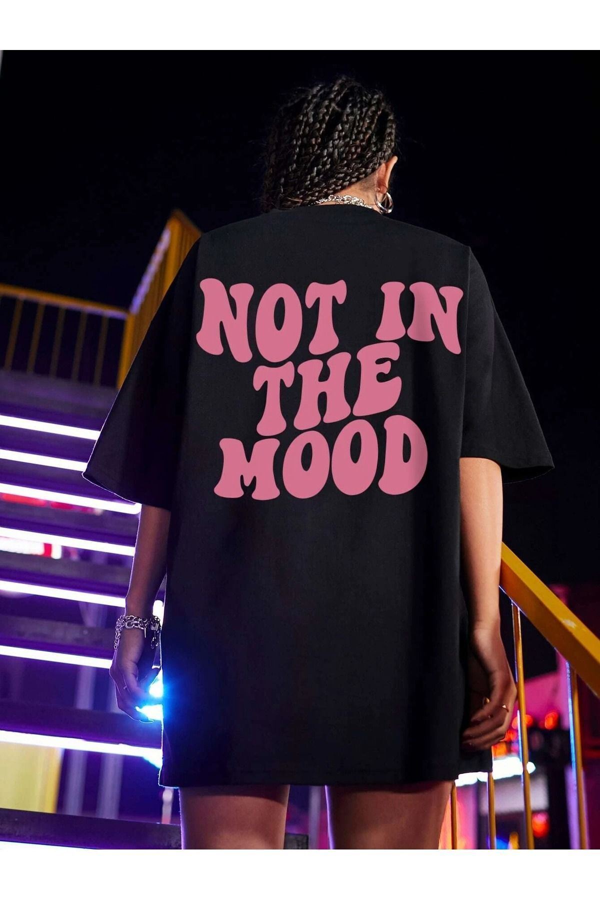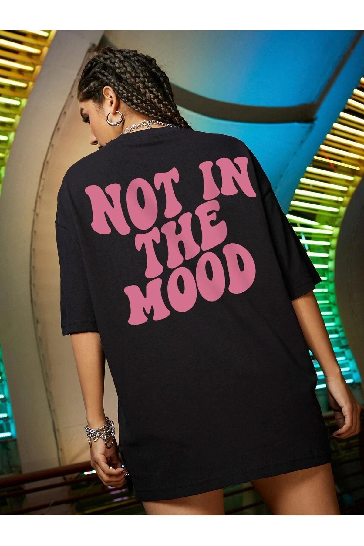 Not Mood Süprem T-Shirt - Siyah Baskılı Oversize Bisiklet Yaka Kısa Kol Tişört