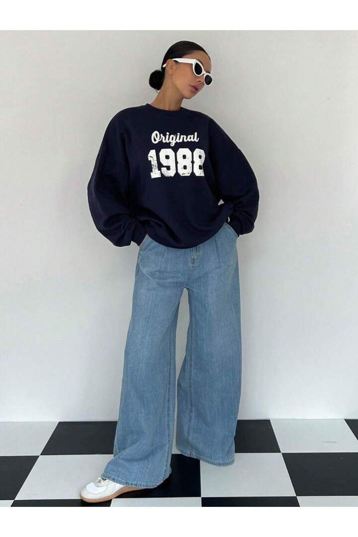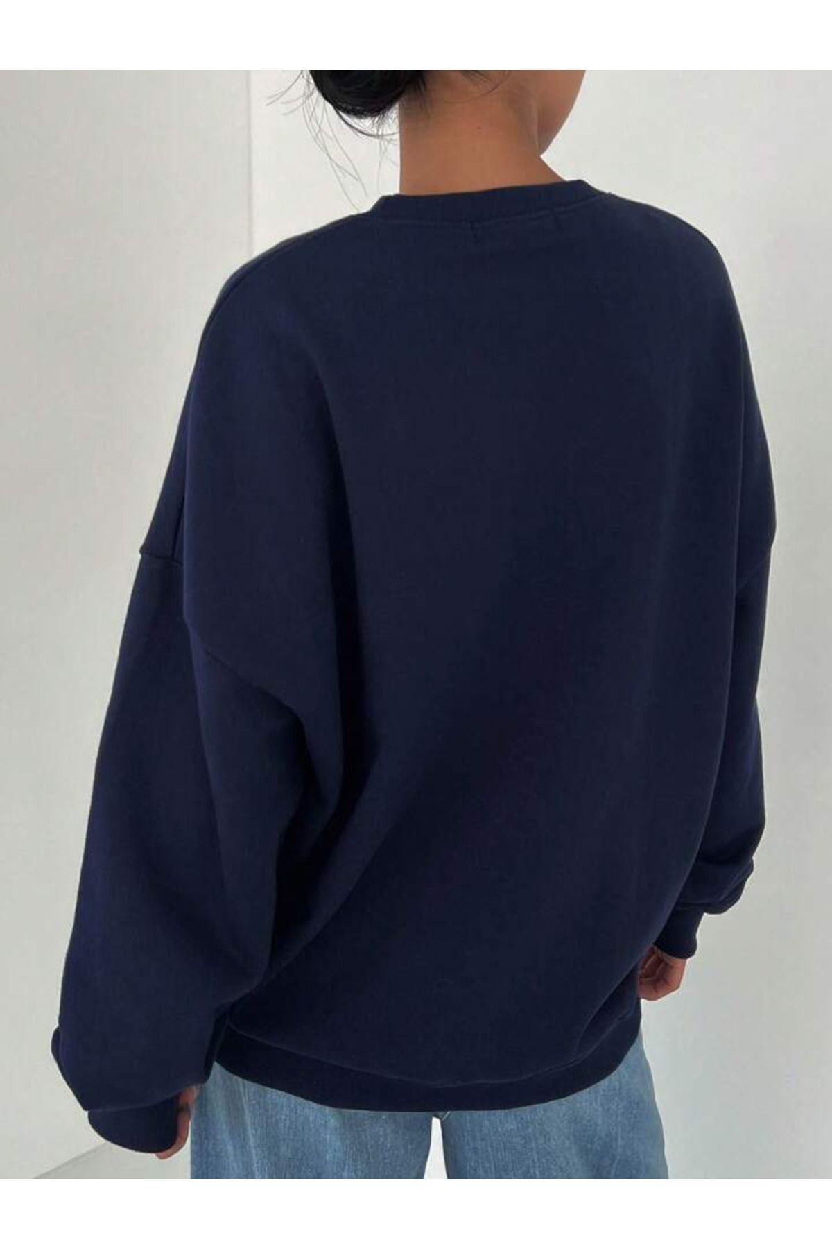 Original 1988 Sweatshirt - Lacivert Baskılı Oversize Kalın Kışlık Bisiklet Yaka