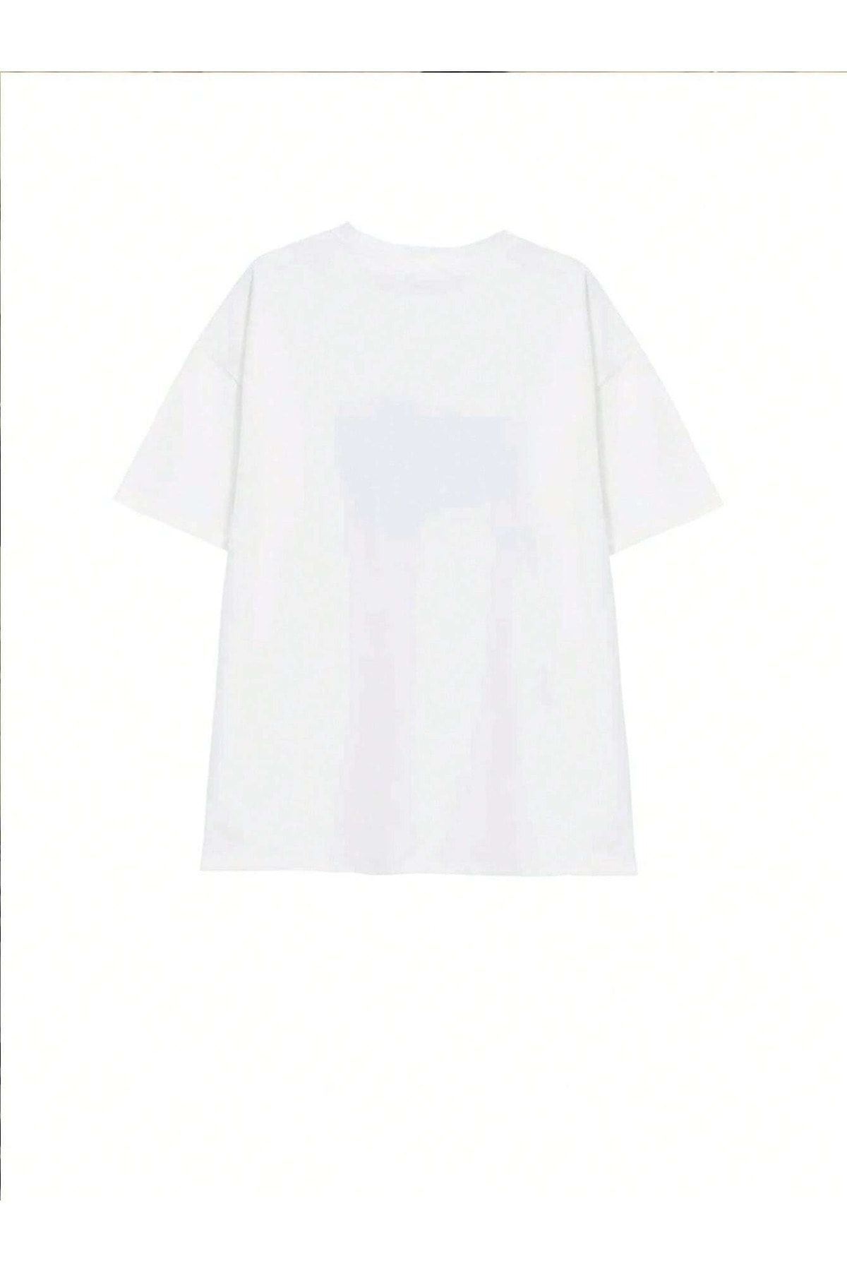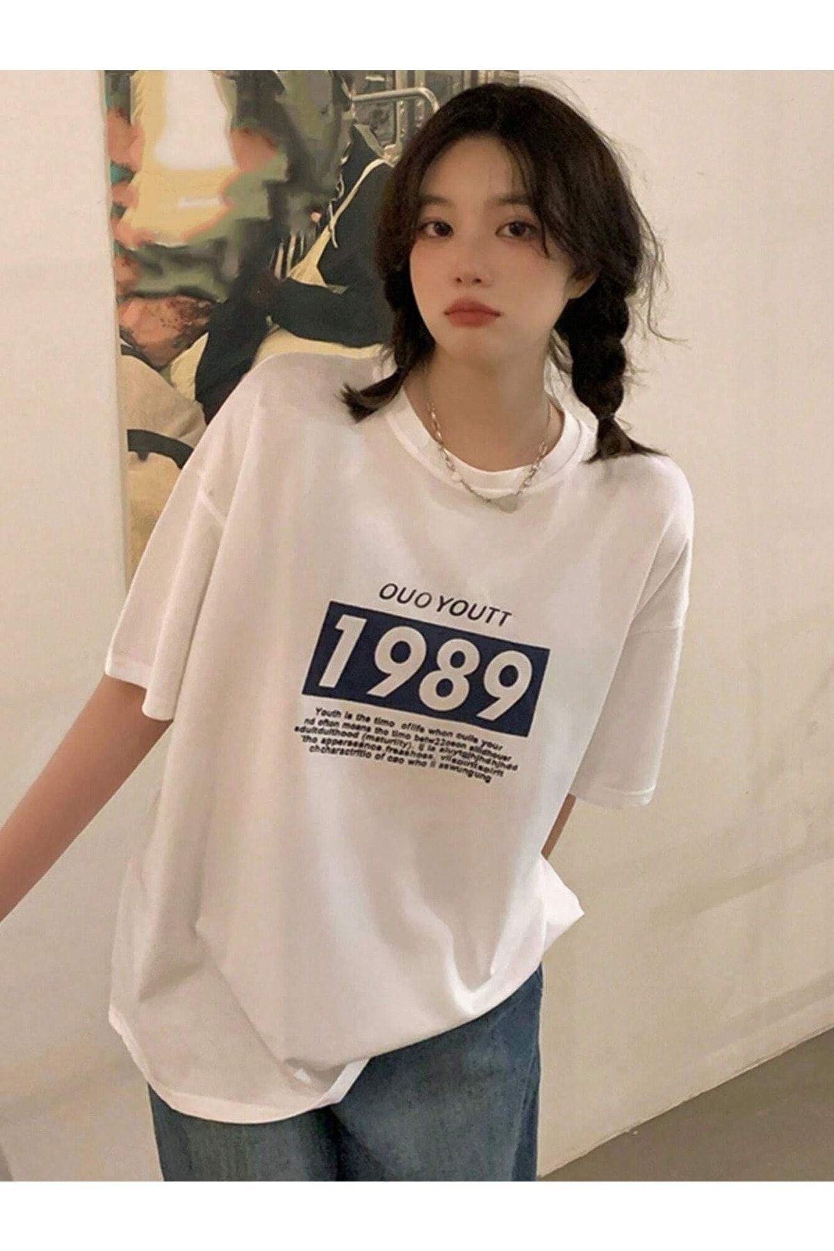 Ouo Youtt 1989 T-Shirt - Beyaz Baskılı Oversize Bisiklet Yaka Kısa Kol