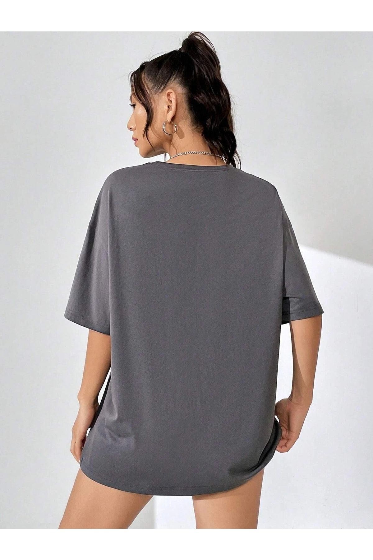 Over Thinking T-shirt - Füme Baskılı Oversize Bisiklet Yaka Kısa Kol Tişört