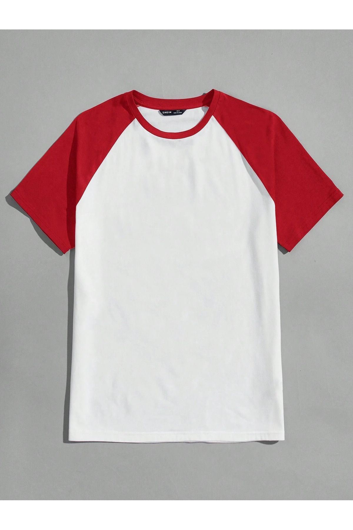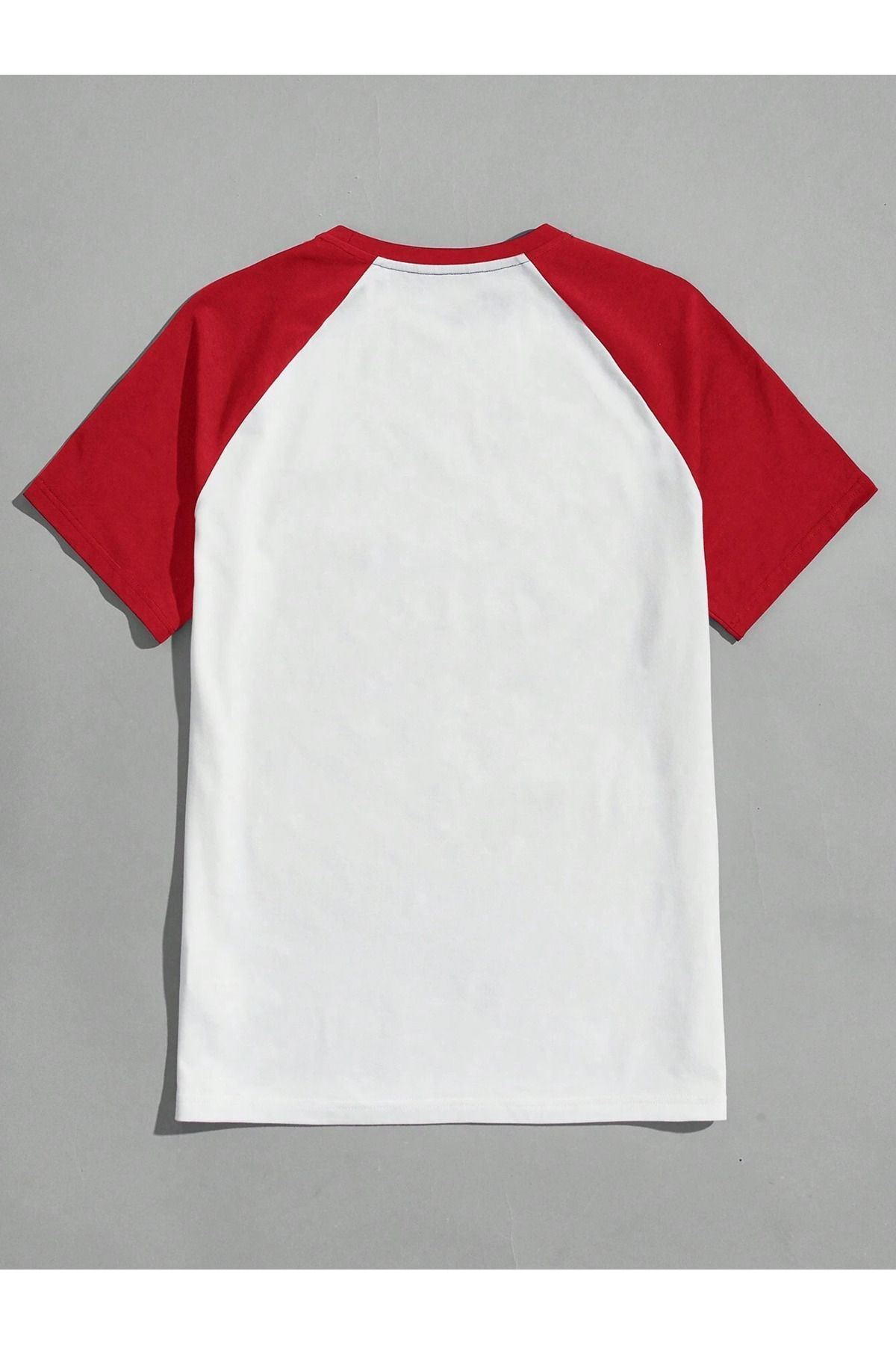 Oversize Kırmızı Beyaz Baskısız T-shirt - Reglan Kol Unisex Rahat Kalıp