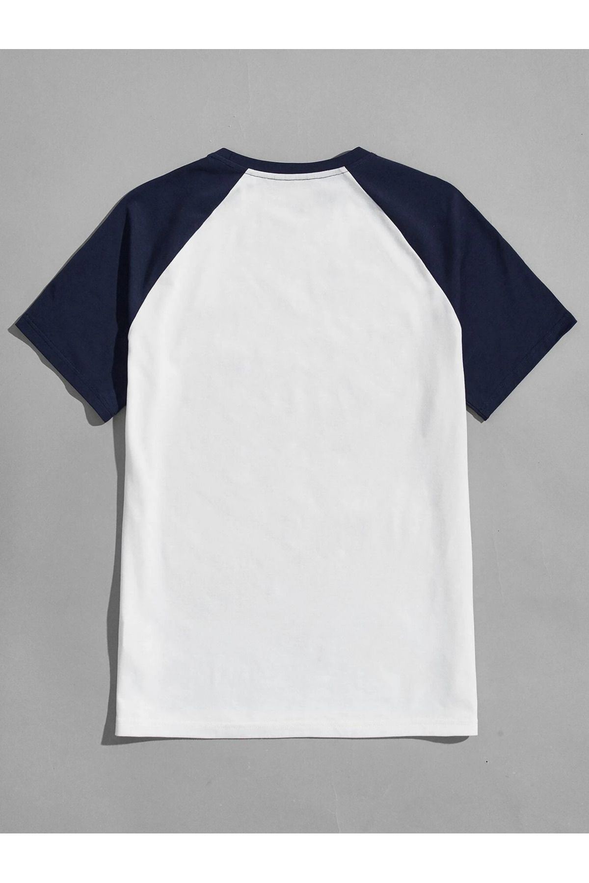 Oversize Lacivert Beyaz Baskısız T-shirt - Reglan Kol Unisex Rahat Kalıp