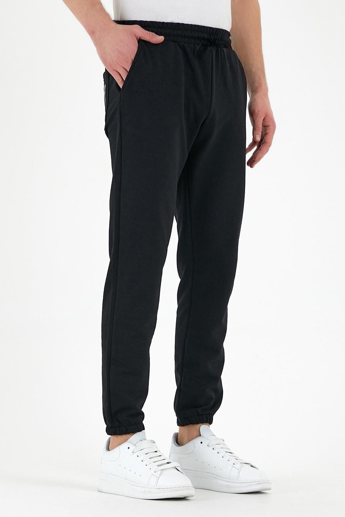 Paça Eşofman Altı Jogger - Siyah Baskılı Lastik Paça Yüksek Bel