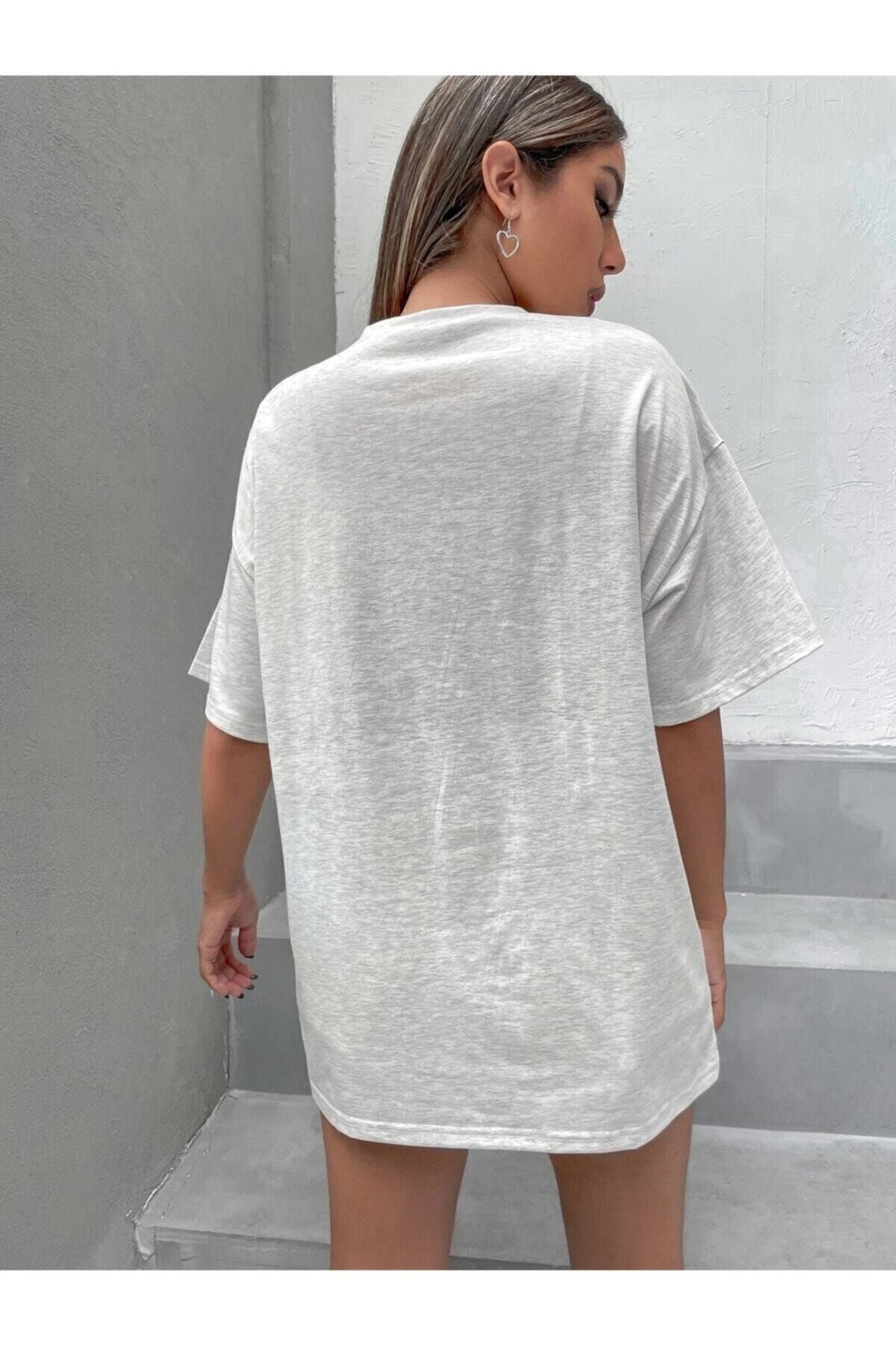 Palm Springs T-shirt - Gri Baskılı Oversize Bisiklet Yaka Kısa Kol Tişört