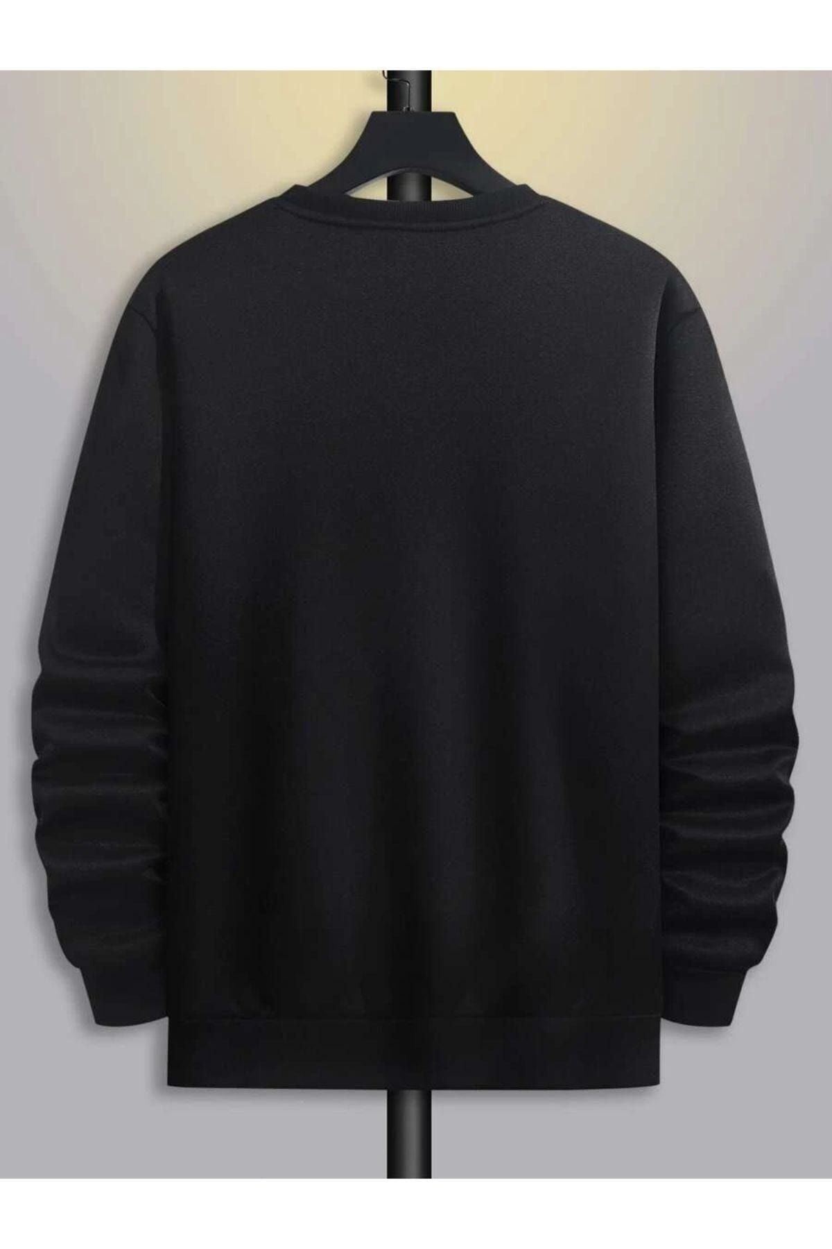 Paris Çizgili Sweatshirt - Siyah Baskılı Oversize Bisiklet Yaka