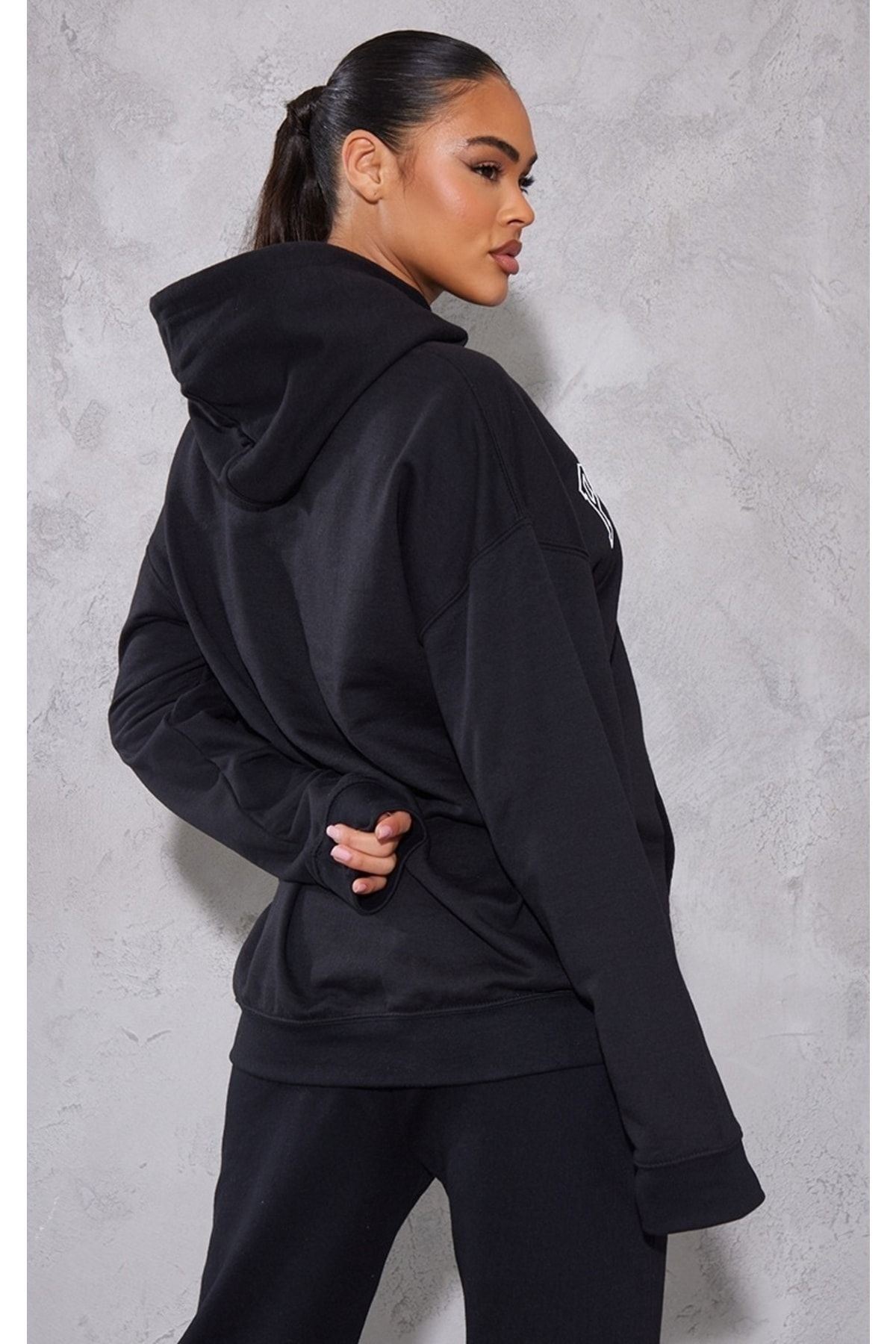 Plt Sport Eşofman Takımı Sweatshirt Jogger - Siyah Baskılı Oversize Şardonlu Kapüşonlu Lastik Paça