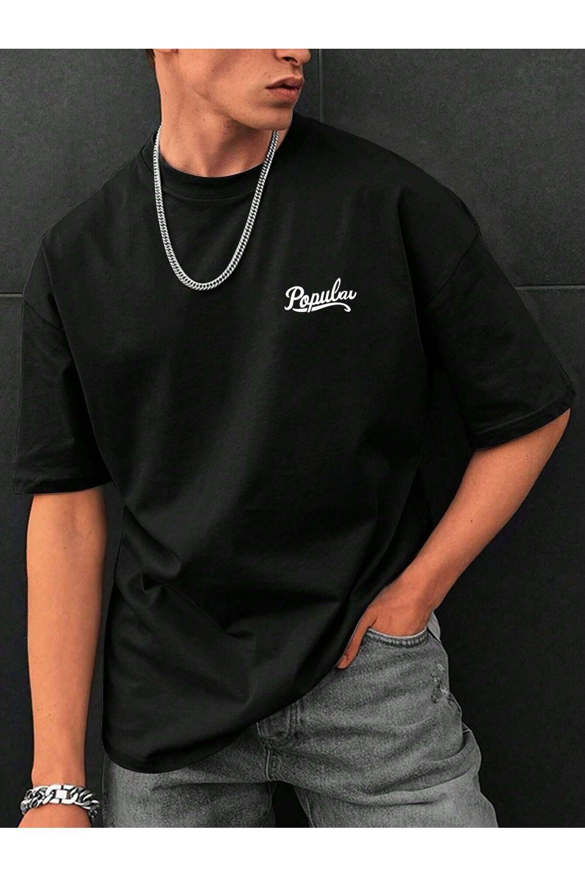 Popular Süprem T-Shirt -Siyah Baskılı Oversize Bisiklet Yaka Kısa Kol Tişört
