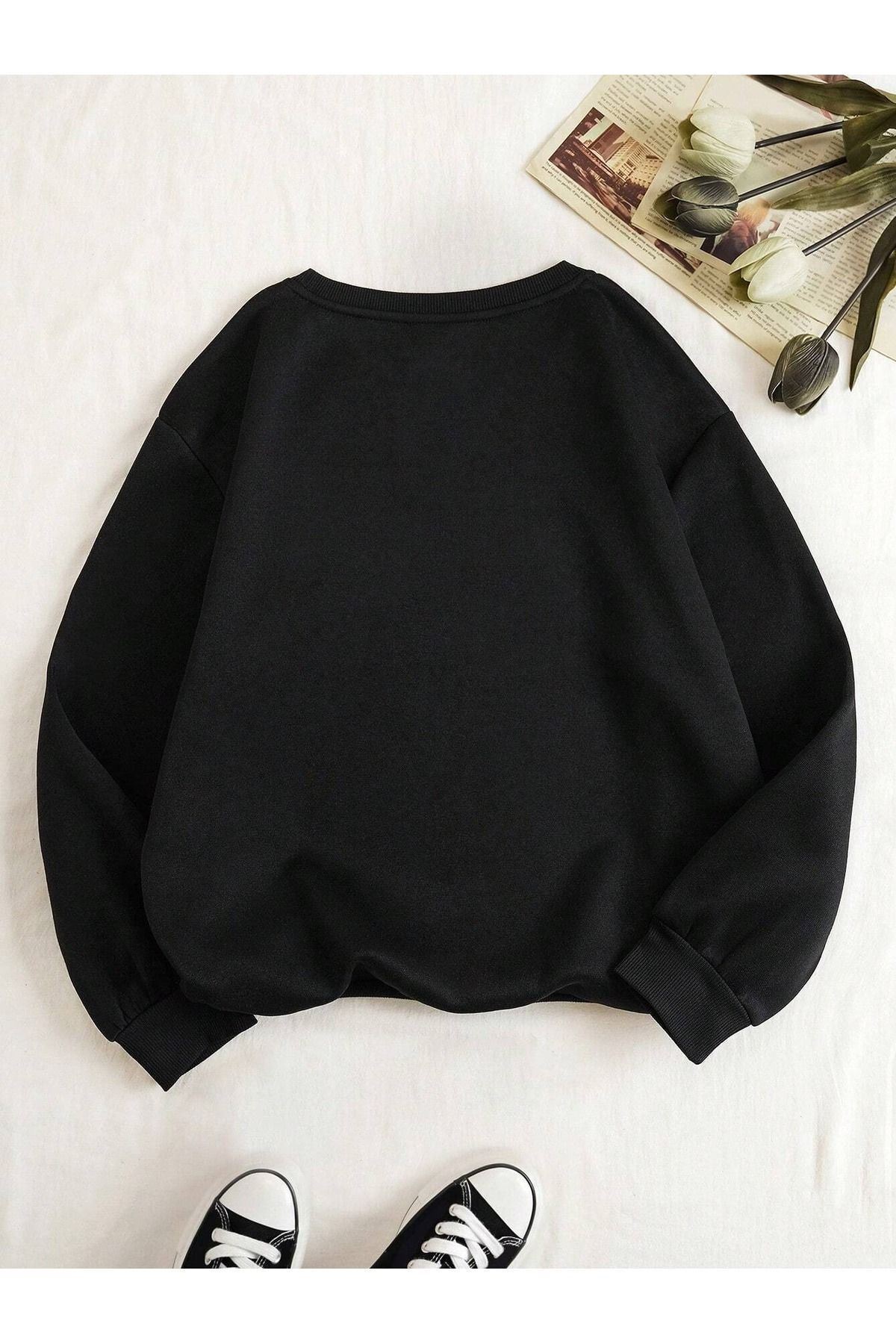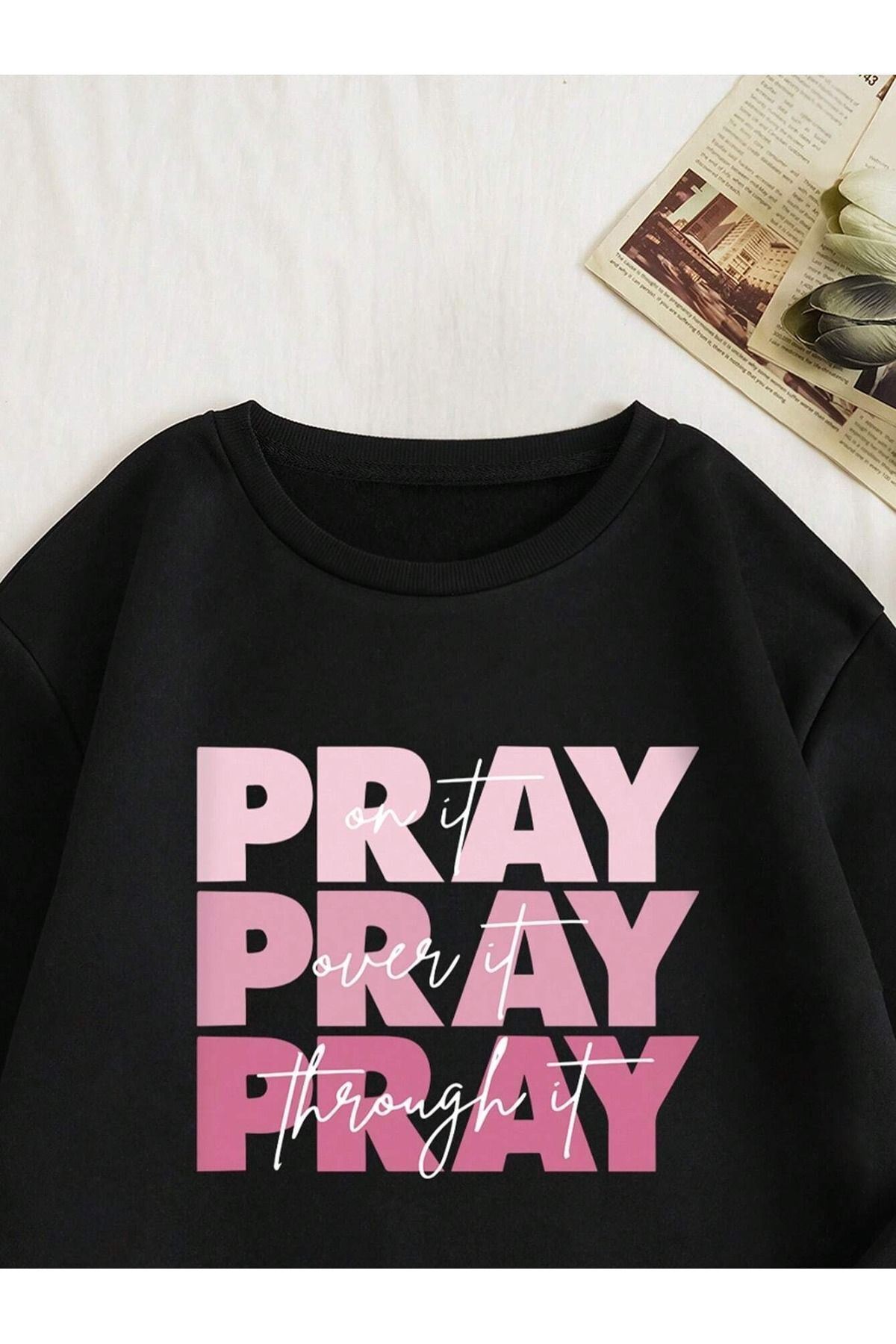 Pray Sweatshirt - Siyah Baskılı Oversize Bisiklet Yaka