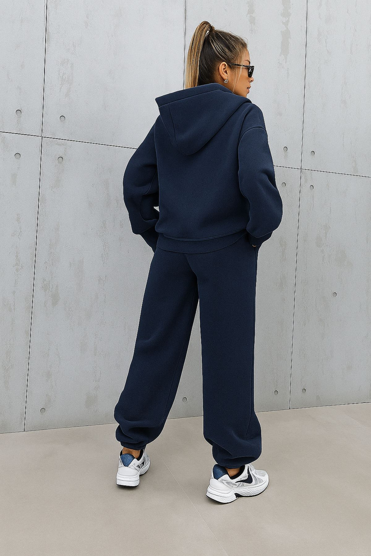 Private Eşofman Takımı Sweatshirt Jogger - Lacivert Baskılı Oversize Şardonlu Kapüşonlu