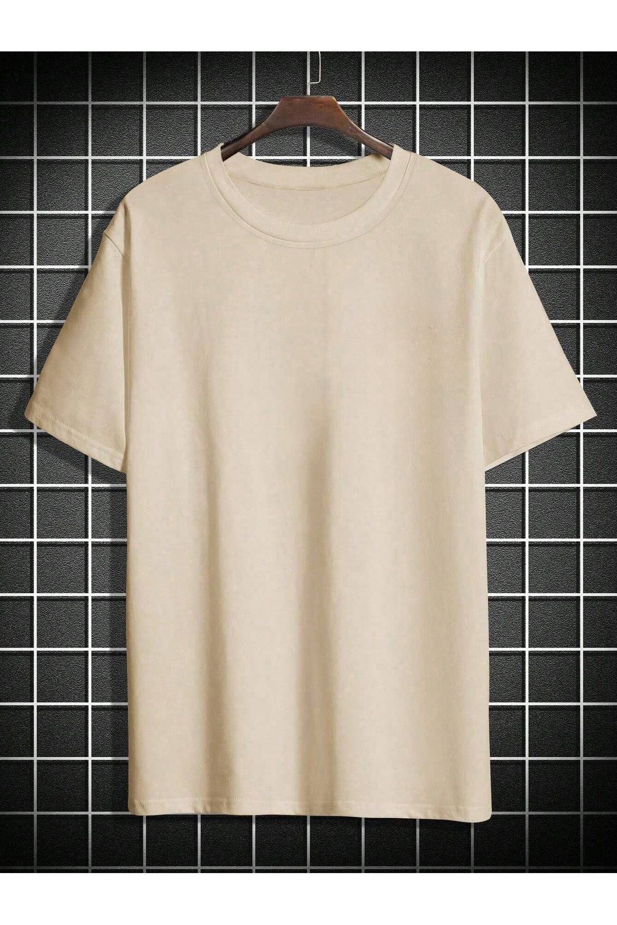 Pusula Süprem T-Shirt - Bej Baskılı Oversize Bisiklet Yaka Kısa Kol Tişört