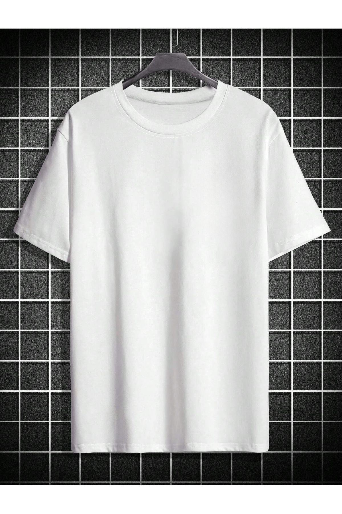 Pusula Süprem T-Shirt - Beyaz Baskılı Oversize Bisiklet Yaka Kısa Kol Tişört