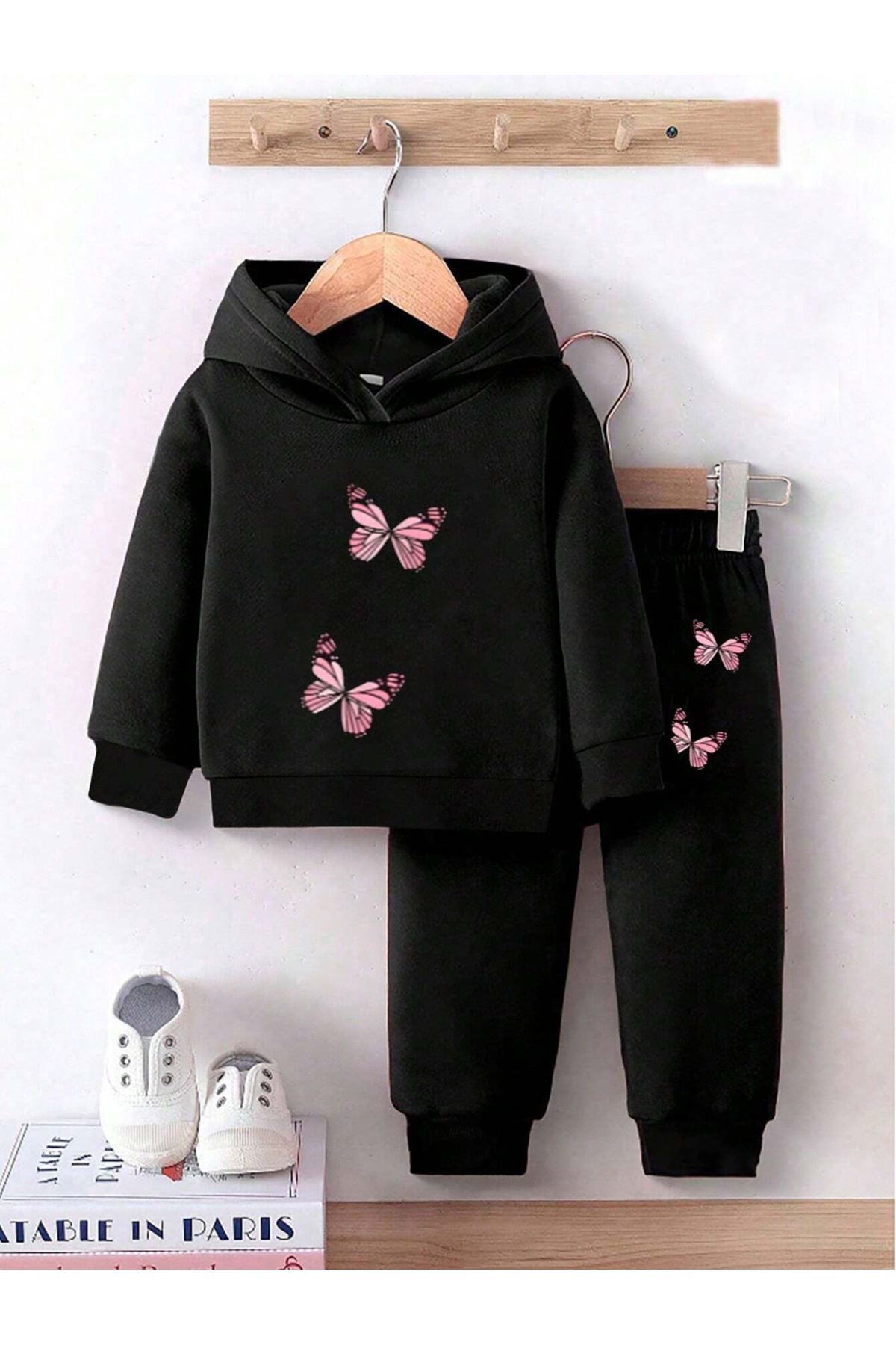 - %80 pamuk ve %20 polyester karışımı kumaştan üretilmiş, cildi tahriş etmeyen yumuşak dokusuyla çocukların konforunu ön planda tutar.; - 30 derecede tersten yıkama önerisiyle kolay bakım imkanı sunar; böylece ebeveynler için pratik bir kullanım sağlar.; - Dijital baskı teknolojisi ile renklerin canlılığını uzun süre korurken, kelebek deseniyle şıklığı günlük giyime taşır.; - Bel kısmında bulunmayan bu takım, rahat hareket edebilmek için tasarlanmıştır ve her türlü aktiviteye uyum sağlar.; - Basic koleksiyonun sadeliğini yansıtan bu parça, zamansız parçalar arasında yerini alır.; - Türkiye'de üretilmiş olup yerel üretim avantajını ailenizin bütçesine yansıtmanızı sağlar.; - Oversize silueti sayesinde geniş beden aralığına hitap eder ve hareket özgürlüğü tanır.; - Kutusuz olarak sunulan bu ürün, minimalist bir ambalaja sahip olup minimalist tarza sahip olanlar için idealdir.; - Esnek yapısıyla gün boyu rahatlık sunarken, tüm sezonlarda tercih edebileceğiniz bir seçenek oluşturur.; - İki parçadan oluşan sweatshirt-eşofman takımı, hem kız hem erkek çocuklar için uygundur ve unisex kullanım vaad eder.; - Cepsiz tasarım modern bir görünüm sergilerken aynı zamanda pratikliği arttırır.; - Lastikli paça detayları sayesinde ayakkabılara mükemmel uyum sağlayarak stil sahibi kombinler oluşturmanızda yardımcı olur.; - Astarsız yapıya sahip olmasıyla hafiflik hissi verirken, örgü dokuma tipi dayanıklılığı arttırır.; - Sürdürülebilirlik detayına dikkat edilerek üretilmiştir; çevreye duyarlı bir seçim yapmış olursunuz.; - Kapüşonlu yaka tipi soğuk havalarda ekstra koruma sağlarken aynı zamanda stil sahibi görünmenizi de mümkün kılar.; - Uzun boy kesimiyle vücut hatlarını nazikçe sararak zarif bir duruş kazandırır.; - Örme kumaşı esneklik sunarken dayanıklılığı arttırarak uzun süreli kullanım vaad eder.; - Standart kol tipi ile rahatlıkla hareket edebilmenize olanak tanırken, uzun kol boyu mevsim geçişlerinde ideal koruma sağlar.; - Casual/günlük ortamlarda rahatlıkla tercih edebileceğiniz bu takım, evdeki gündelik aktivitelerden dışarıdaki maceralara kadar her anınızda yanınızda olacak.