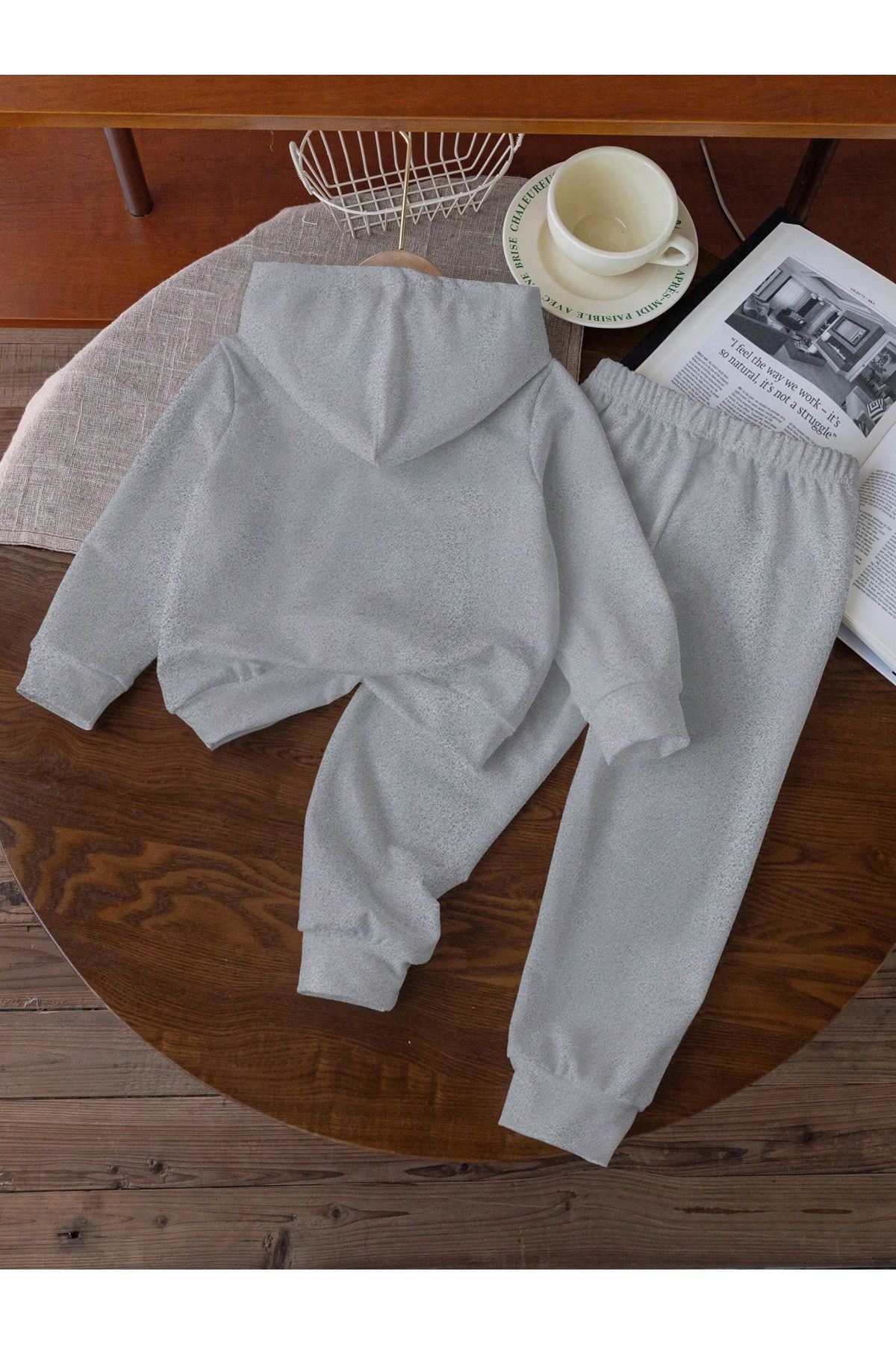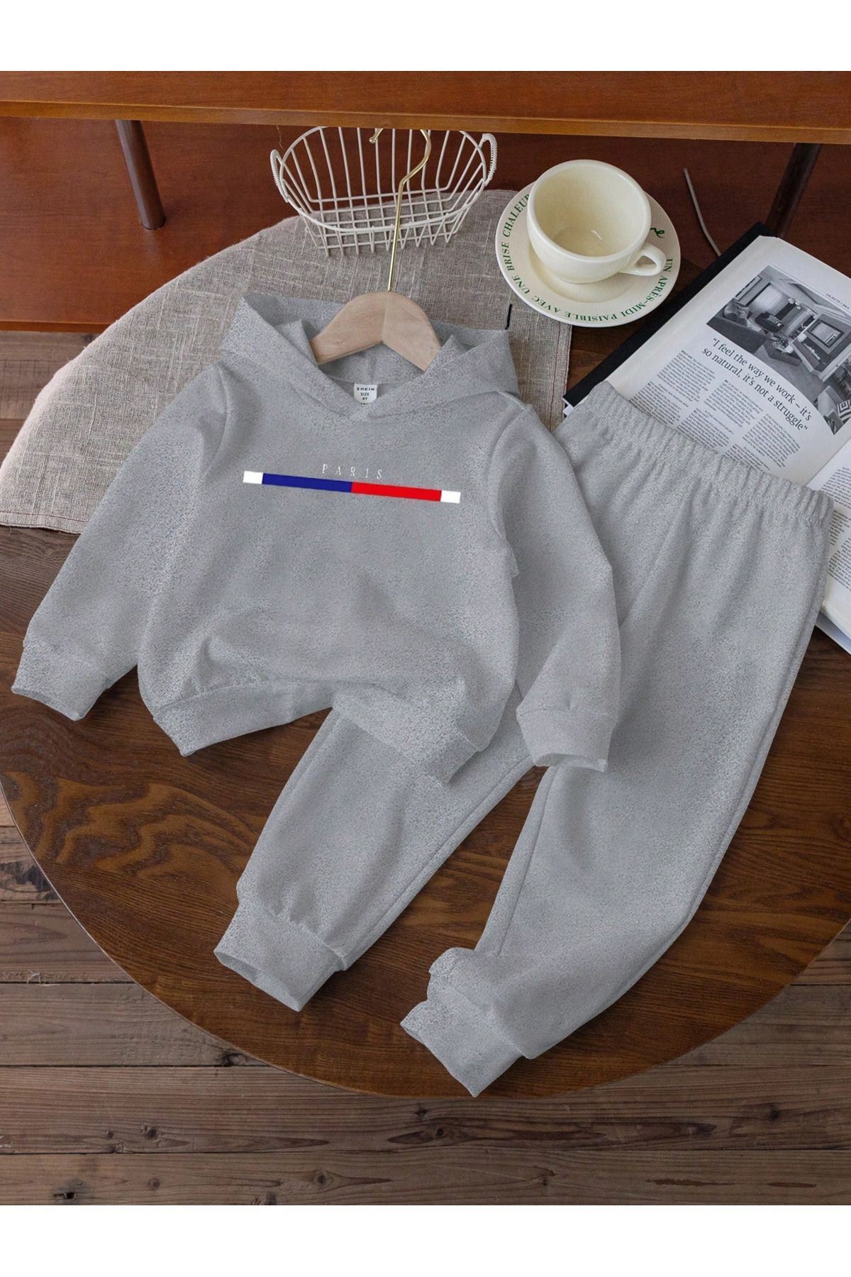 - %80 pamuk ve %20 polyester karışımı kumaştan üretilmiş, çocukların cildine nazik dokunuşuyla konfor sunar.; - İki parçadan oluşan set; kapüşonlu sweatshirt ve jogger pantolon olmak üzere tam bir kombin sağlar.; - 30 derecede tersten yıkama önerisiyle kolay bakım imkanı sunar ve uzun süreli kullanım için idealdir.; - Dijital baskı teknolojisi ile canlı renklerde Paris baskısı, çocukların enerjisini yansıtır.; - Bel kısmında kemersiz tasarım sayesinde rahat hareket etme özgürlüğü tanır.; - Basic koleksiyonun sadeliğiyle her ortama uyum sağlayan oversize siluetiyle dikkat çeker.; - Kutusuz ambalaj seçeneğiyle minimalist bir alışveriş deneyimi yaşatır.; - Esnek yapısı sayesinde gün boyu konforlu bir kullanım vaat eder.; - Her mevsim giyilebilen bu takım, tüm sezonlarda favoriniz olacak tarza sahiptir.; - 2 iplik şardonlu dokuma tipi dayanıklılığı arttırarak ürünün formunu korumasına yardımcı olur.; - Baskılı deseniyle göz alıcı detaylar ekleyerek stil sahibi görünüm kazandırır.; - Cepsiz tasarımı modern ve sade bir görünüm sergilerken aynı zamanda pratikliği ön planda tutar.; - Lastikli paça detayları hem şık duruş sağlar hem de ayakkabının rahatça oturmasını destekler.; - Astarsız yapısı hafiflik hissi verirken katmanlı giyime olanak tanır.; - Sürdürülebilirlik detayına önem verilmemiş olsa da kaliteli malzemeler kullanılmıştır.; - Kapüşonlu yaka tipi soğuk havalarda ekstra koruma sağlarken aynı zamanda stil sahibi bir görünüm sunar.; - Çocuklar için özel olarak tasarlanmış bu unisex takım, hem kız hem erkek çocuklar için uygundur.; - Uzun boy kesimiyle bacakları sıcak tutarken rahat hareket etme imkanı tanır.; - Örme kumaşı esneklik sunarak vücut hatlarına uyum sağlar.; - Standart kol tipi günlük aktivitelerde maksimum konfor sunarken uzun kol boyu soğuktan korur.; - Casual/günlük ortamlara uygun bu takımla her anınıza eşlik edecek pratik ve şık bir seçenektir.