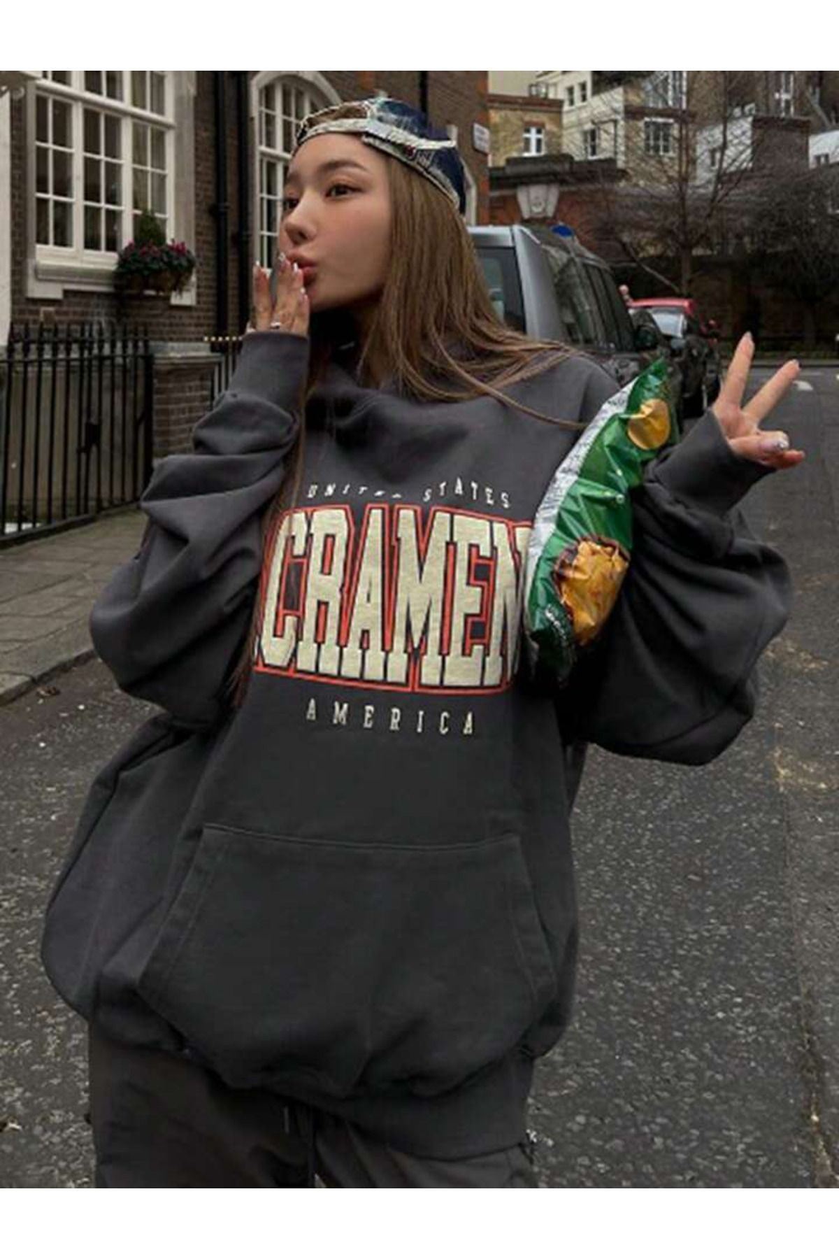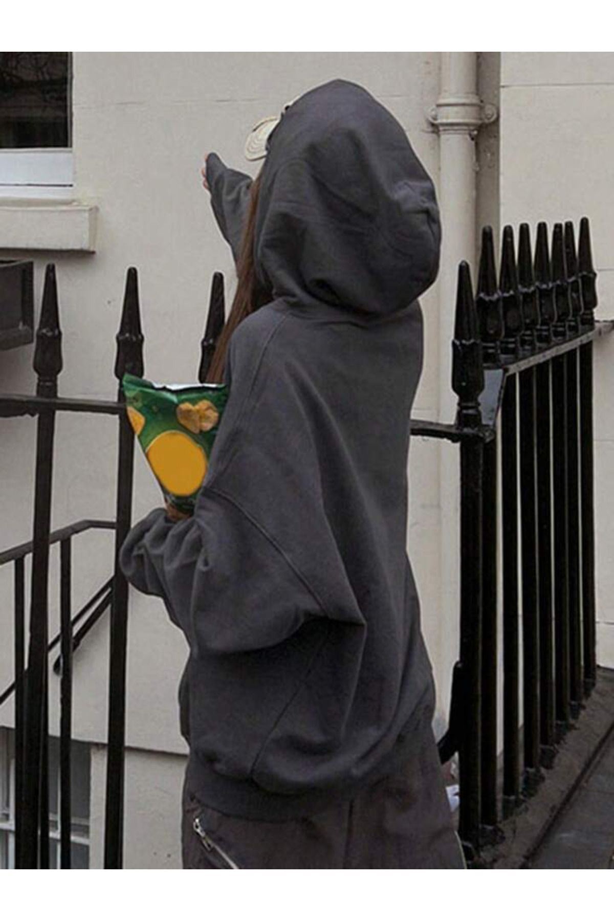 Sacrament Sweatshirt - Füme Oversize Şardonlu Pamuk Kalın Kapüşonlu
