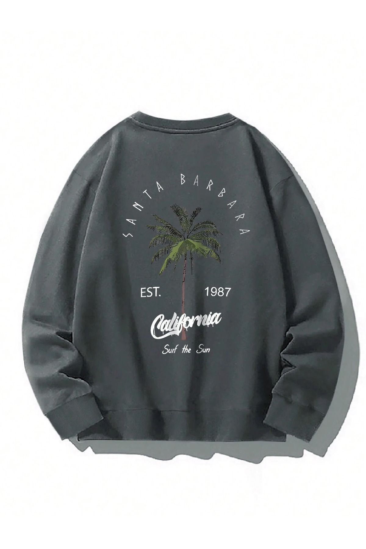 Santa Barbara Kışlık Kalın Sweatshirt - Füme Baskılı Oversize Kalın Kışlık Bisiklet Yaka