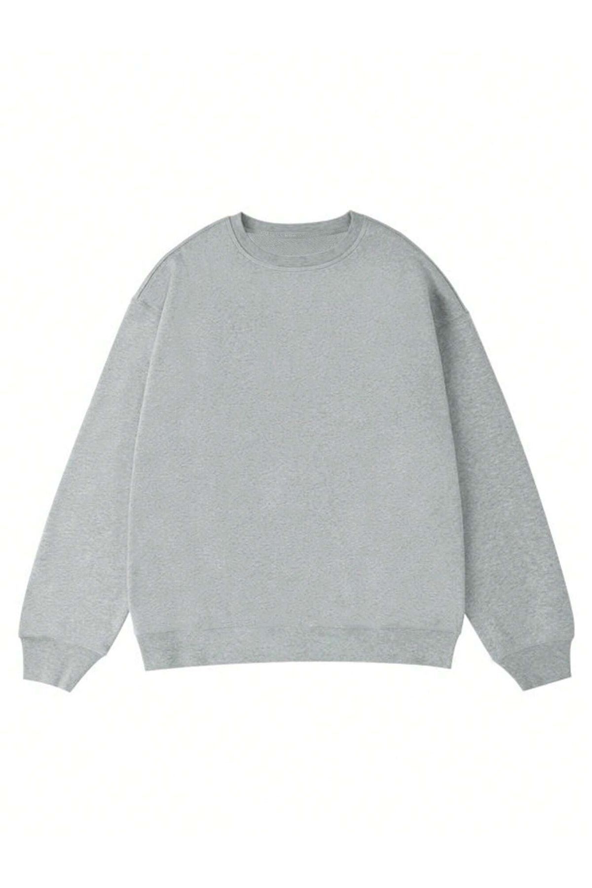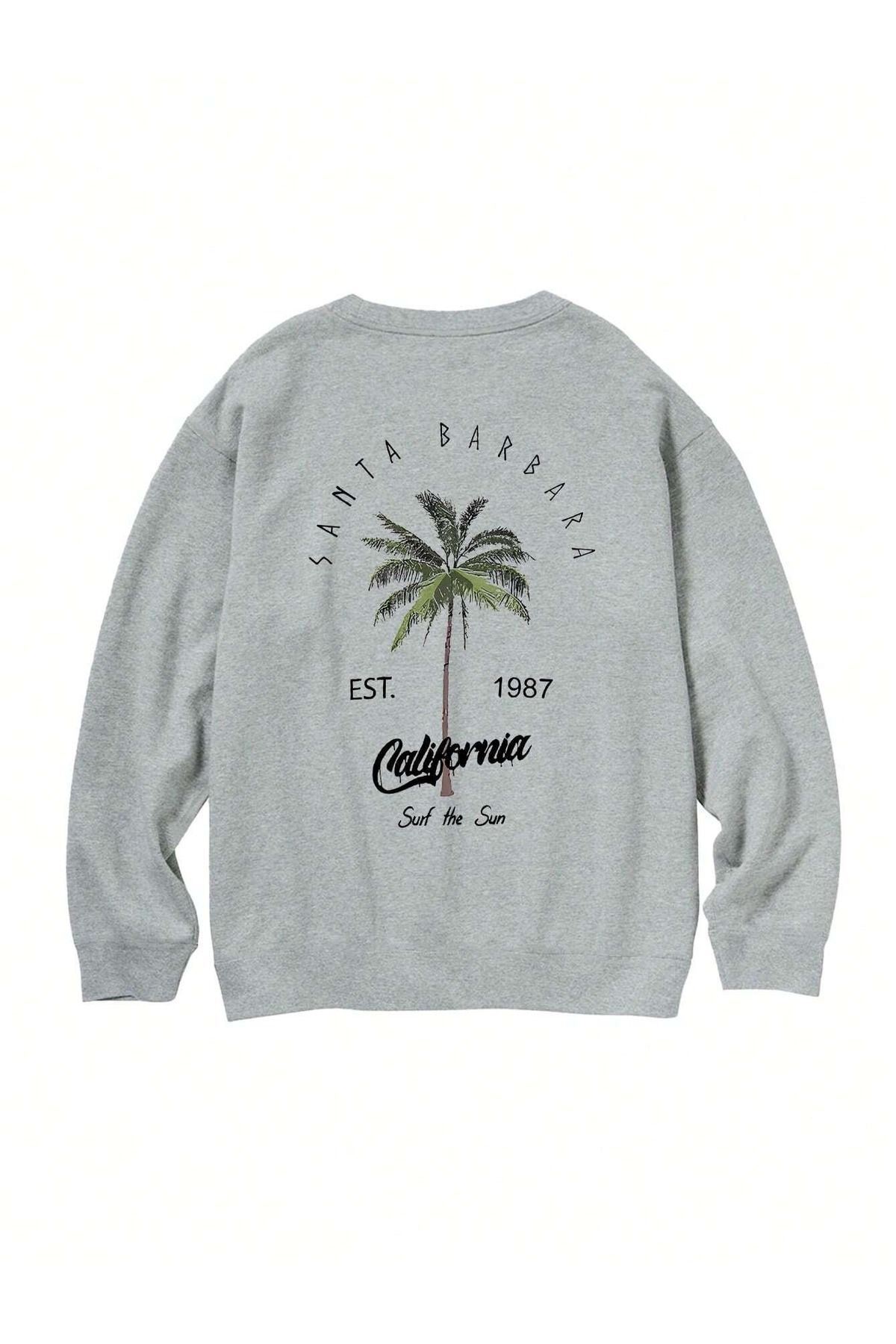Santa Barbara Kışlık Kalın Sweatshirt - Gri Baskılı Oversize Kalın Kışlık Bisiklet Yaka