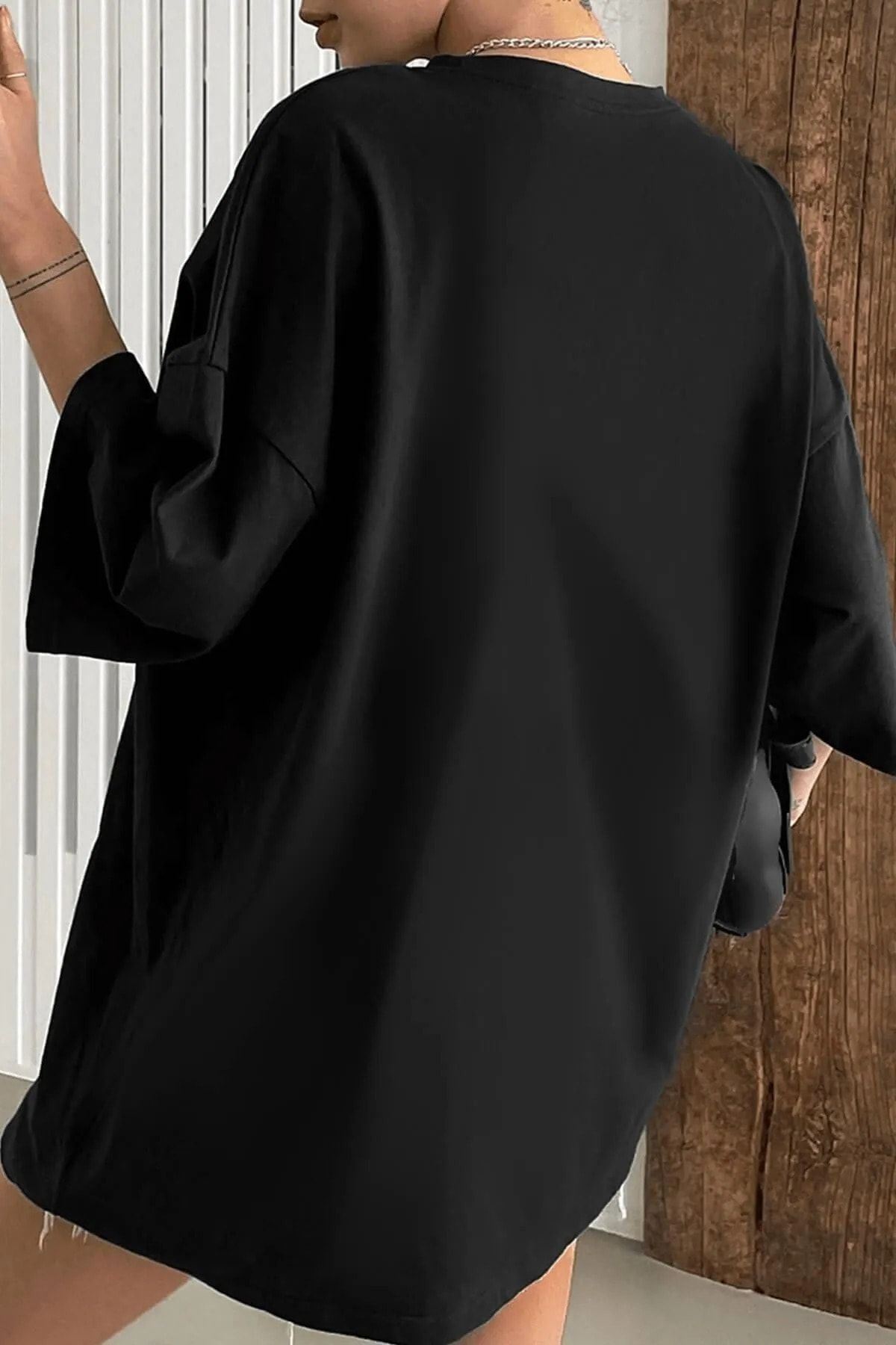 Siyah Basic Düz Baskısız Oversize Salas Boyfriend Kadın T-shirt