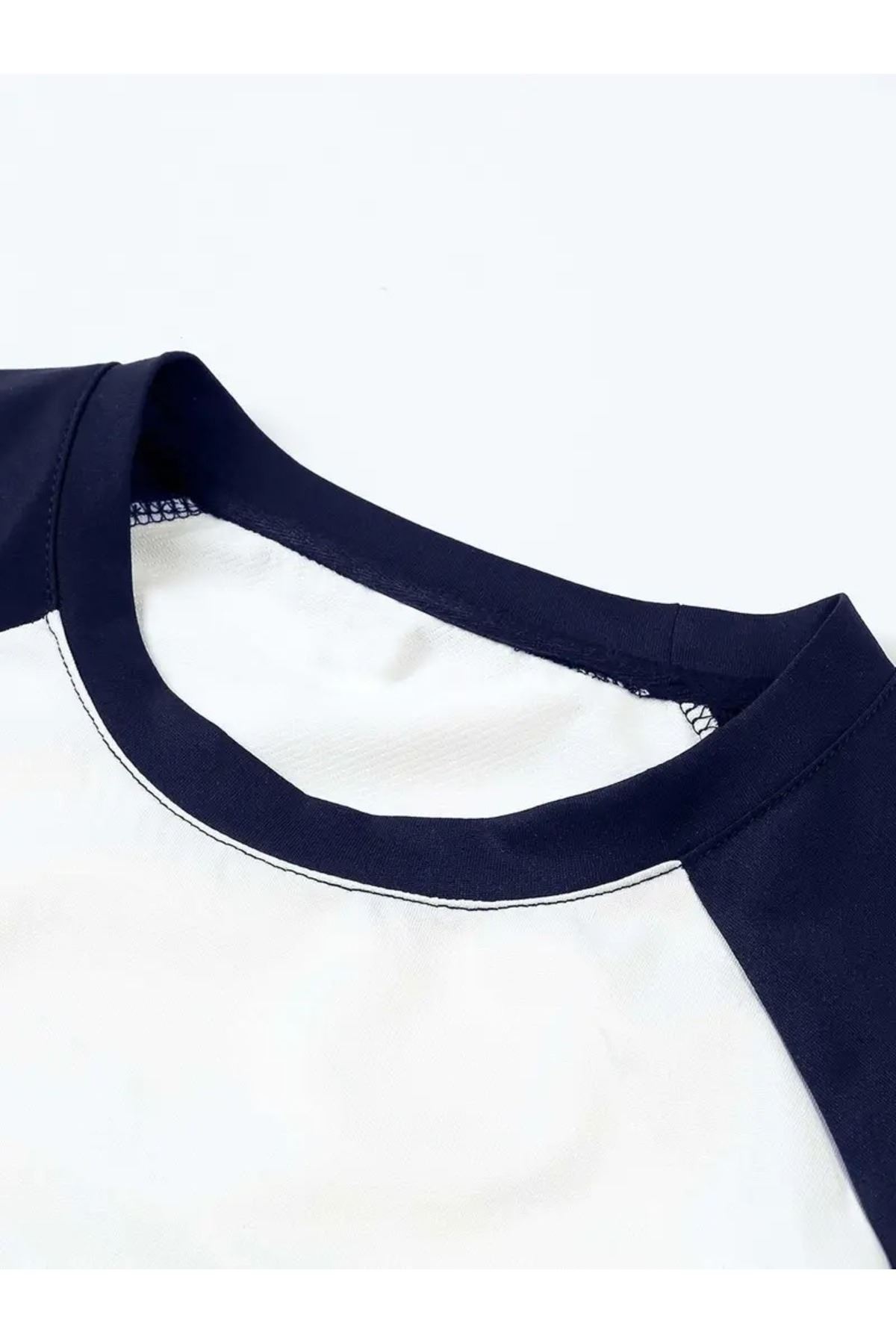 Siyah Better Baskılı Lacivert Reglan Kol Beyaz Pamuklu T-shirt - Oversize