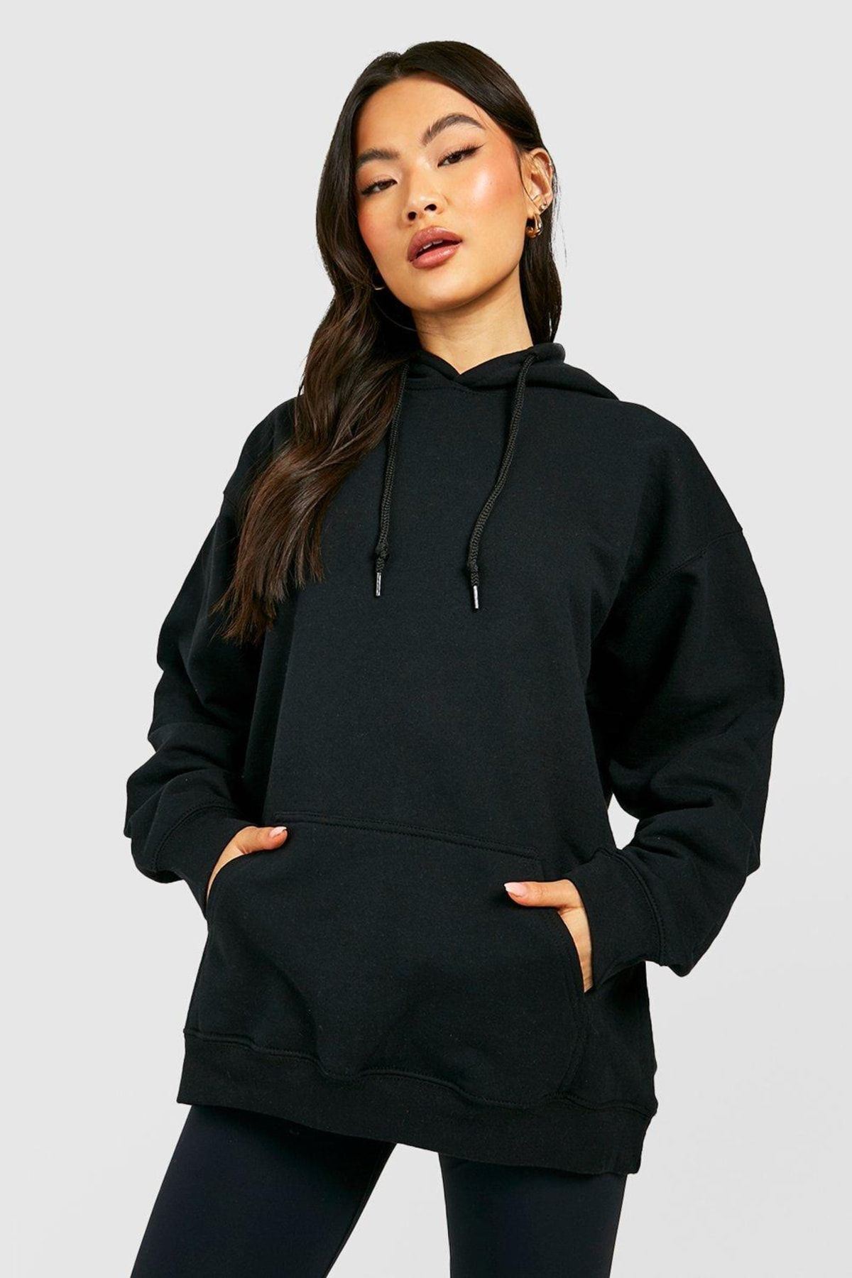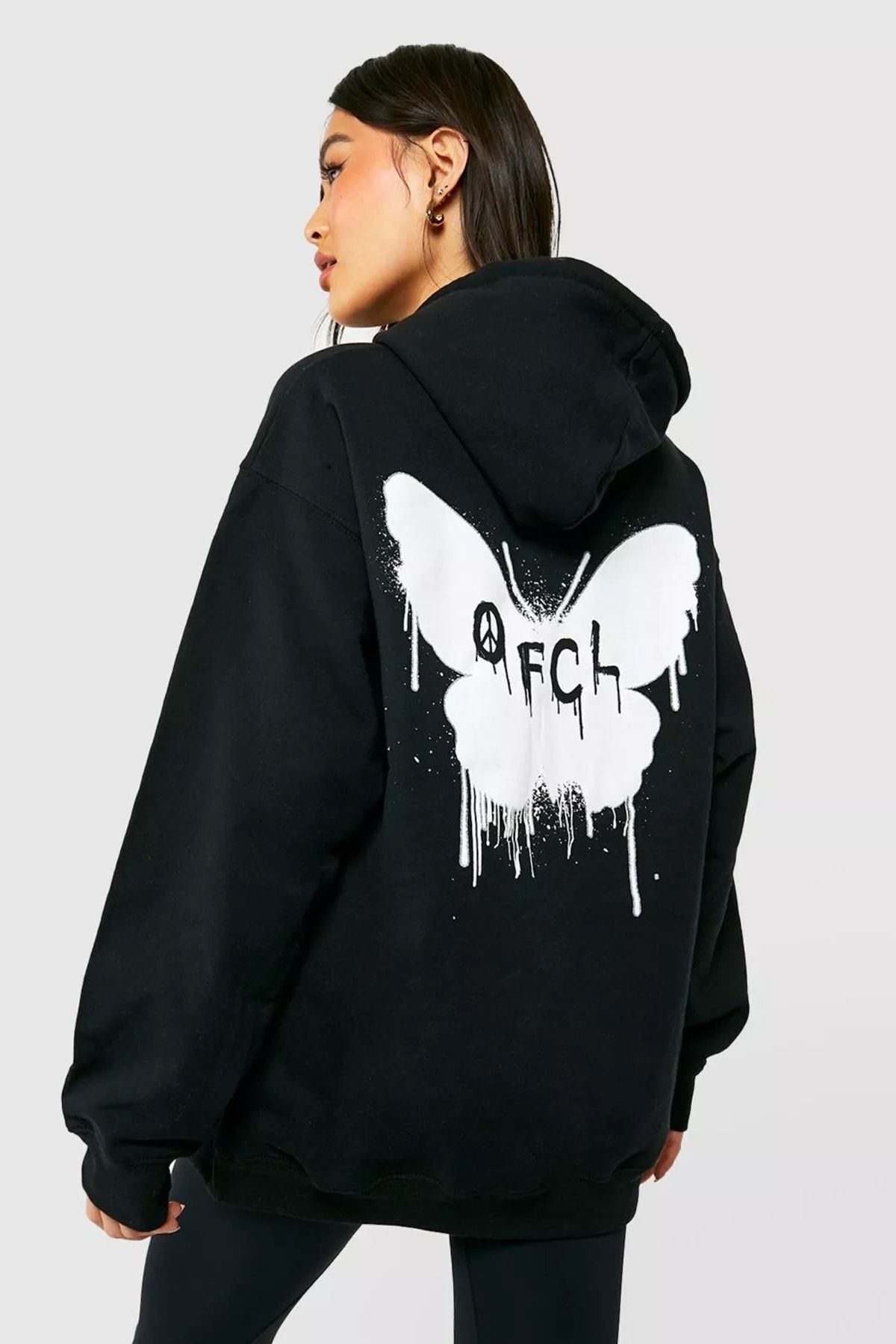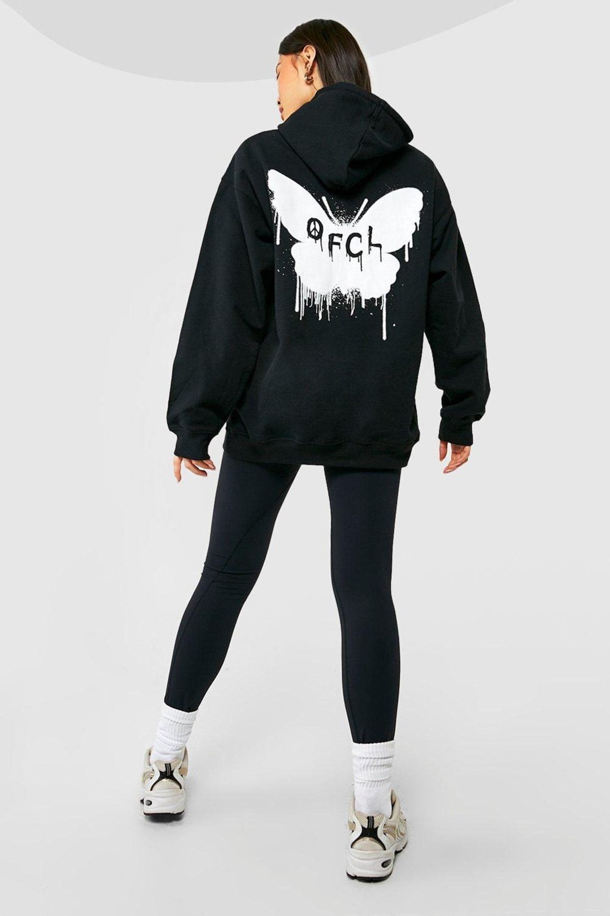 Siyah Butterfly Oversize Sweatshirt - Baskılı Oversize Kapüşonlu