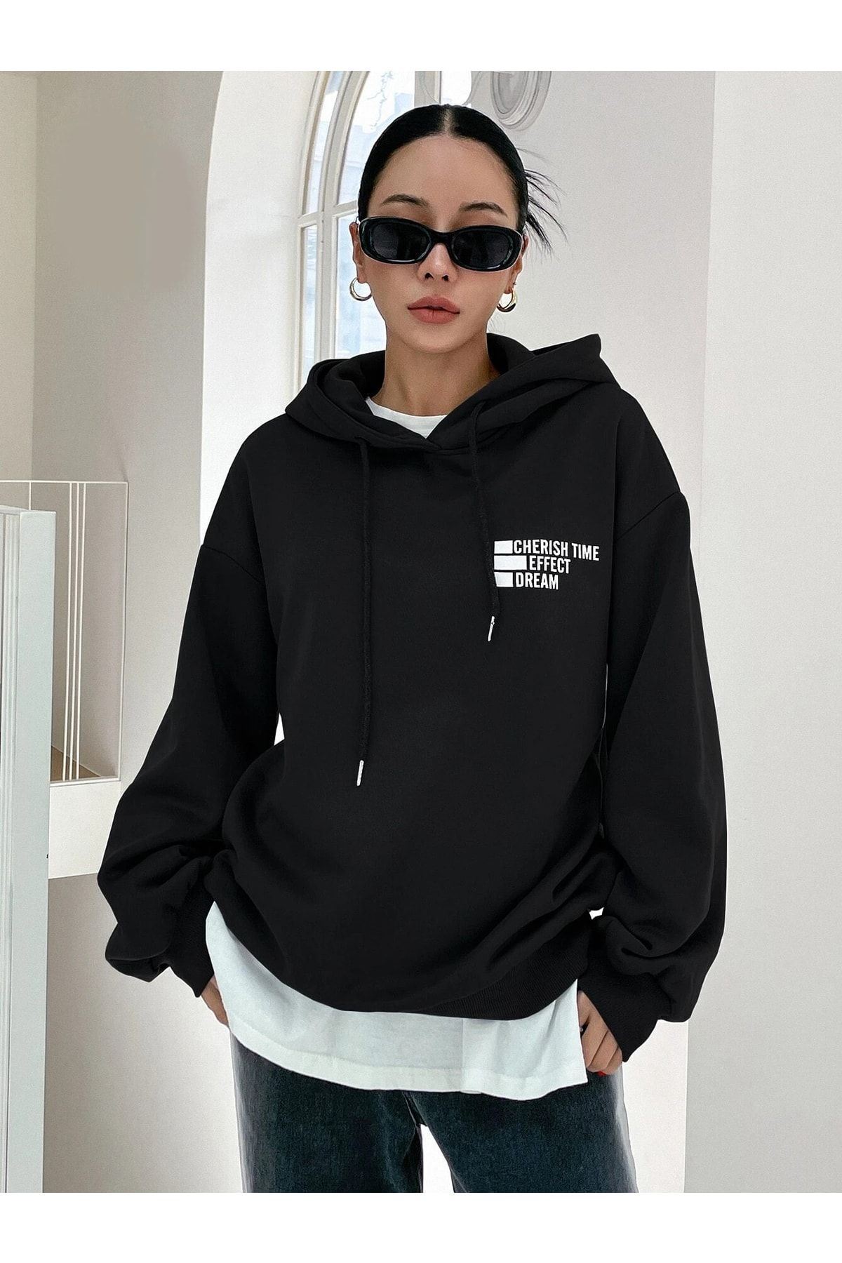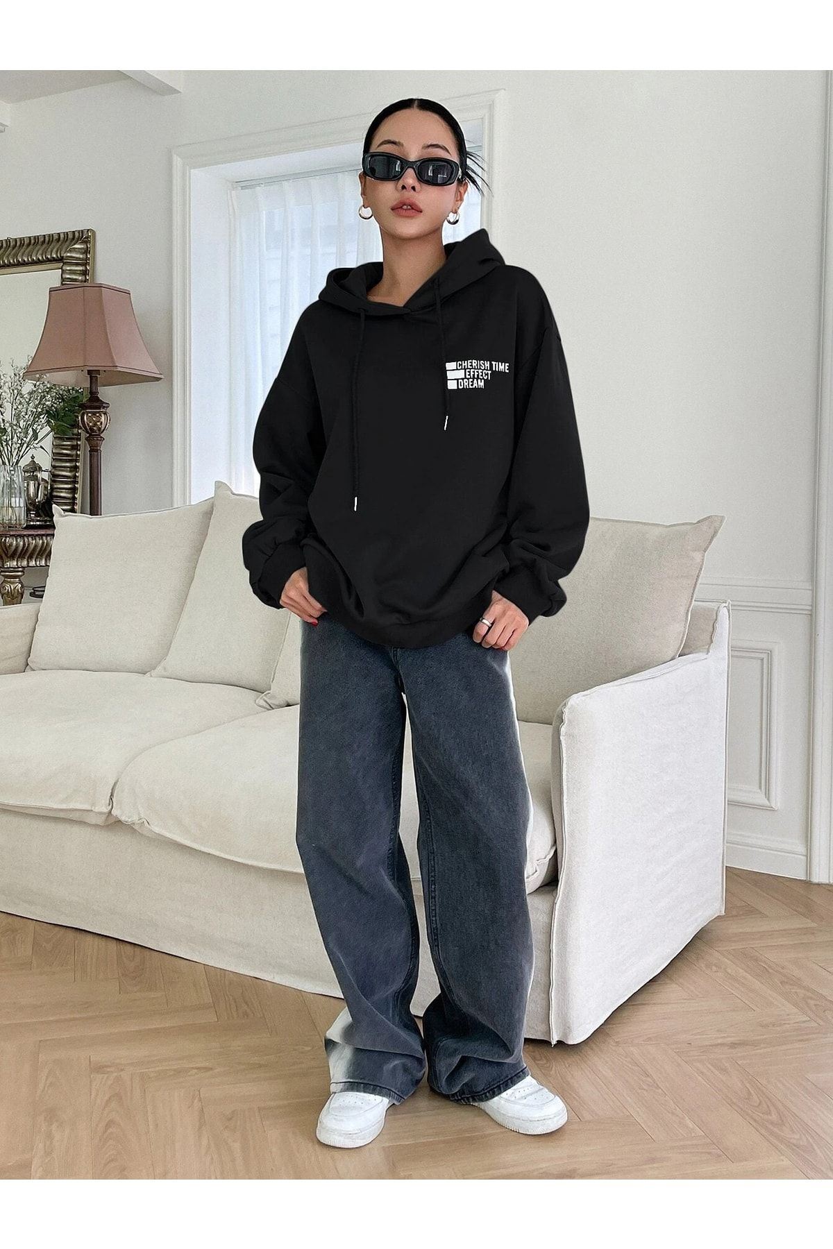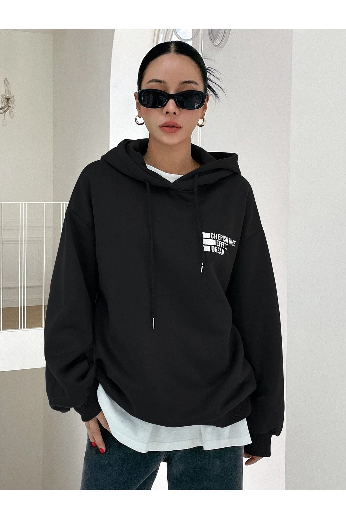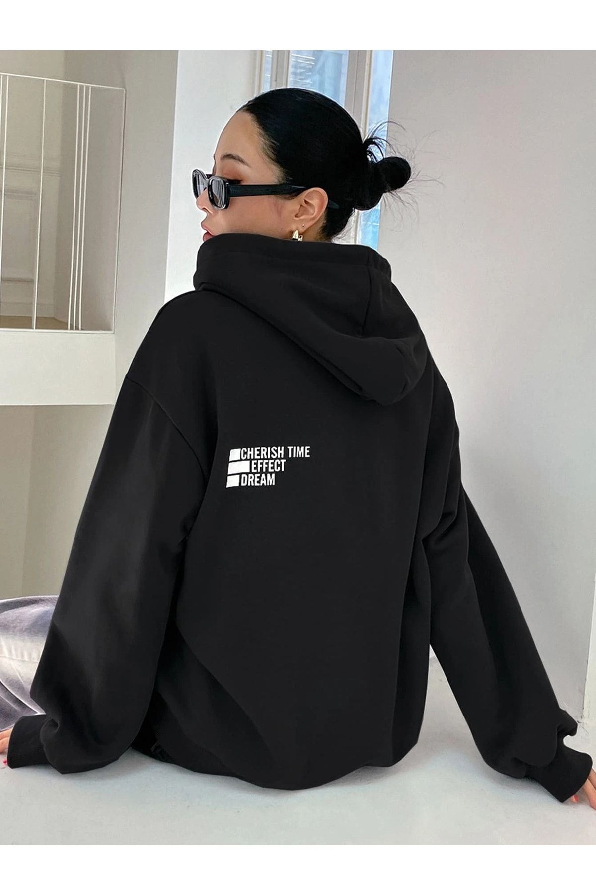 Şık ve modern tasarımıyla dikkat çeken siyah effect baskılı oversize kapüşonlu sweatshirt, günlük kullanımda rahatlık ve tarz arayanların tercihi olacak.; 2 iplik şardonlu dokumasıyla dayanıklı ve kaliteli bir his verirken, oversize kesimiyle modern siluetinizi ön plana çıkarır.; Uzun kollu tasarımı soğuk havalarda ekstra koruma sağlarken kanguru cep detayları fonksiyonellik katmaktadır.; Lastikli bel özelliği sayesinde esneklik kazanır ve vücut hatlarınıza mükemmel uyum sağlar.; Basic siluetiyle her türlü kombininize kolayca uyum sağlayarak gardrobunuzdaki joker parçanız haline gelir.; Günlük stilinizi tamamlamak için ideal olan bu sweatshirt, dijital baskı tekniğiyle canlı ve net efektli baskıyı bir arada sunar.; Recycle+organik malzemeler kullanarak sürdürülebilirliğe önem veren bu ürün, çevre dostu seçimler yapmanızda size yardımcı olur.; 30 derecede yıkama talimatıyla bakımı kolaydır ve uzun süre ilk günkü gibi kalmasını sağlar.; Basic koleksiyonunun parçası olan bu parça, zamansız tasarımlara sahip olup gardrobunuzdaki çeşitliliği arttırır.;